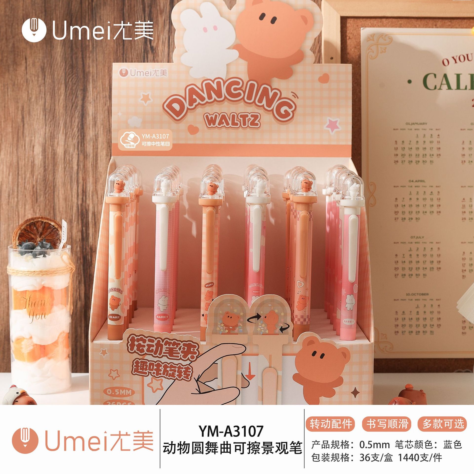 • 블루 YM3107 동물 왈츠 풍경 지울 수 있는 펜 1개 [36개/박스]