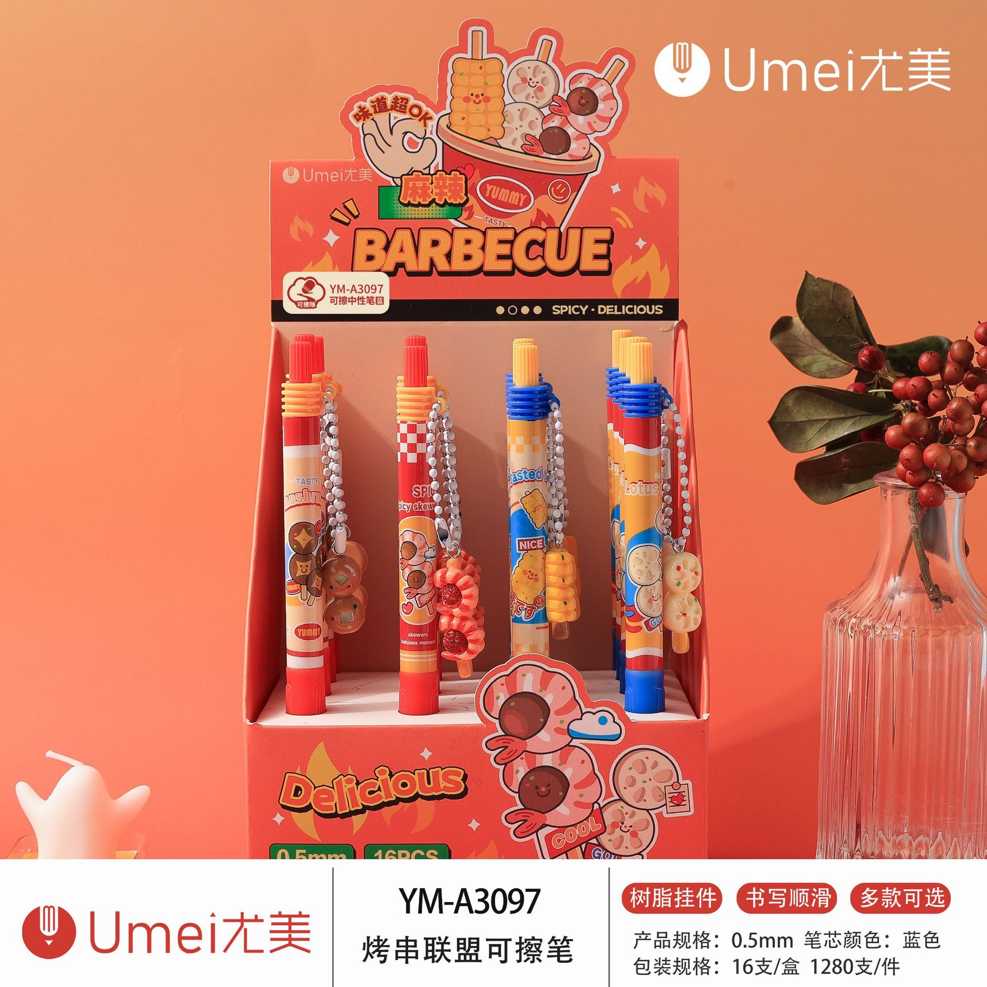 • 블루 YM3097 꼬치 얼라이언스 펜던트 지울 수 있는 펜 1개 [16개/박스]