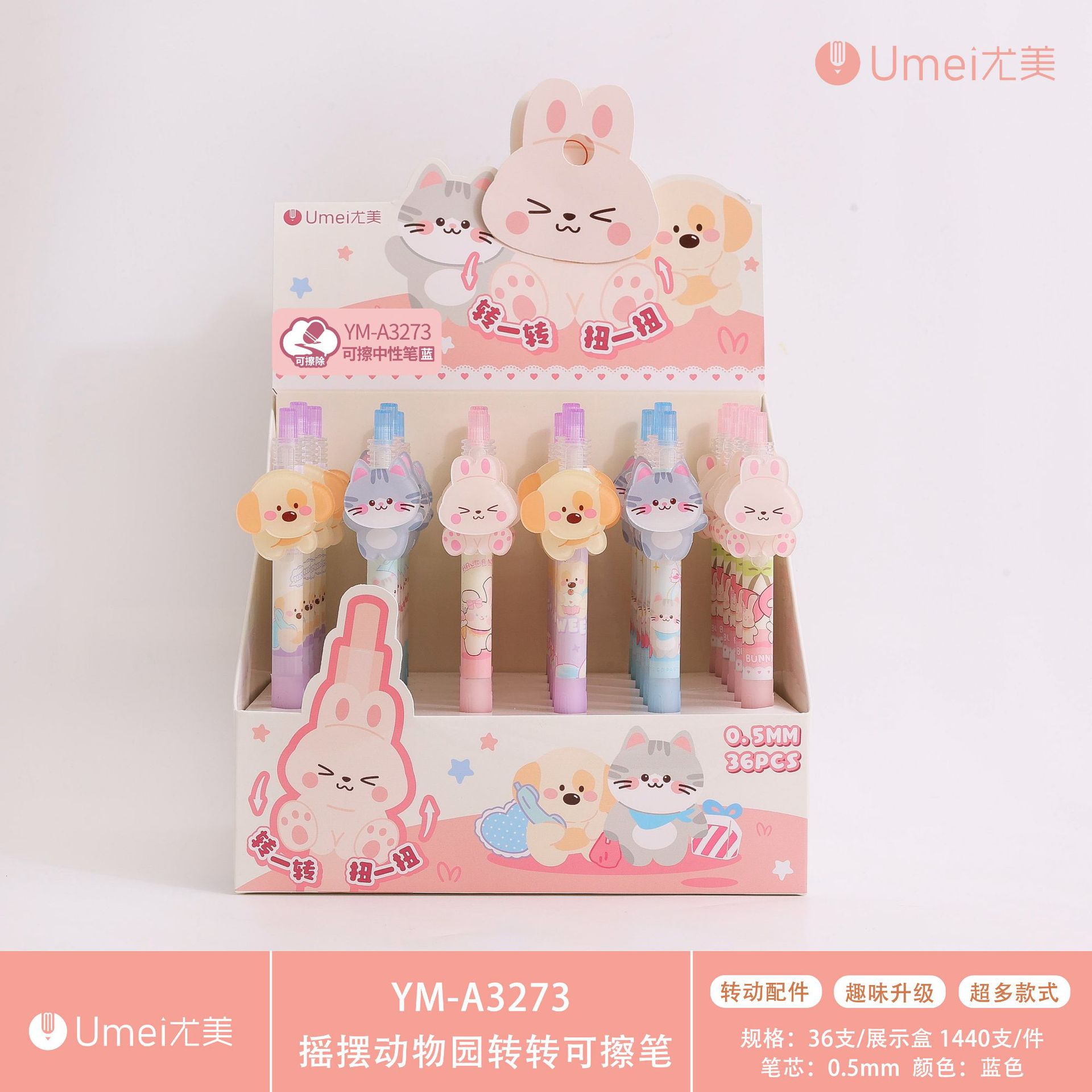 • 블루 YM2819 우유 흰 토끼 지울 수있는 펜 1 [36 PCs/box]