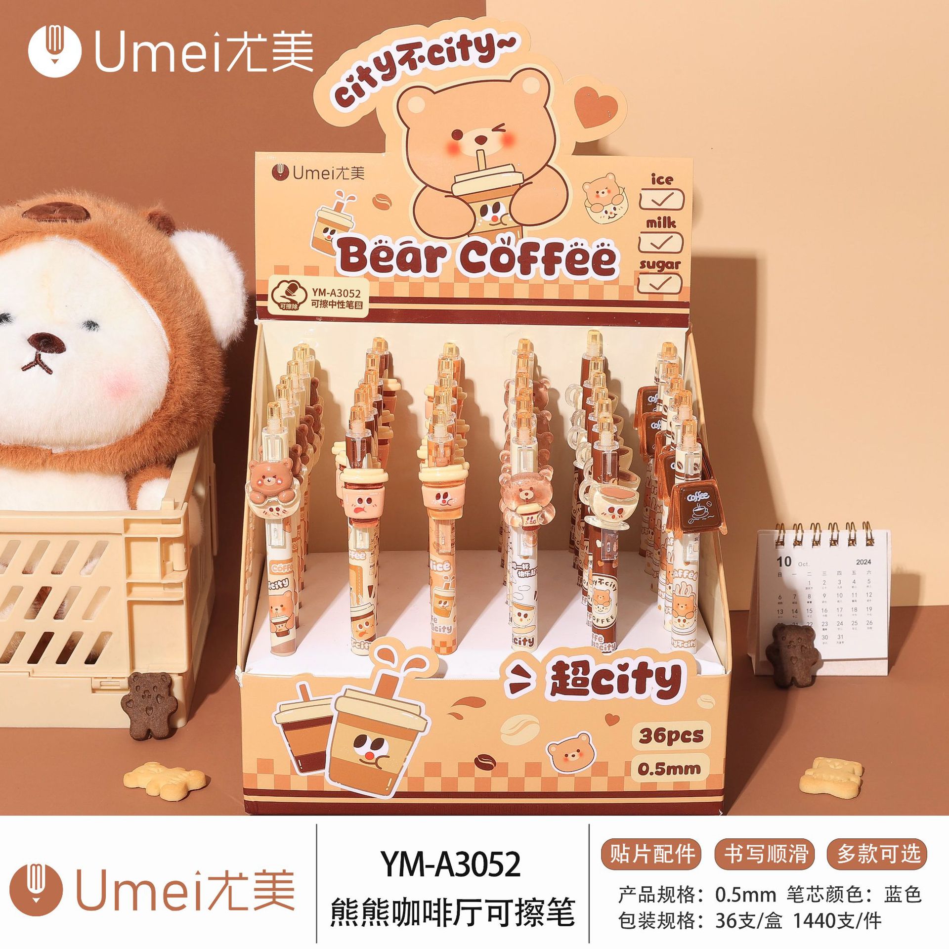 • 블루 YM3052 베어 카페 지울 수 있는 펜 1개 [36개/박스]