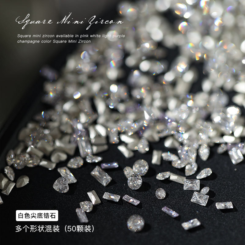 50 PC 슈퍼 플래시 미니 뾰족한 지르콘 네일 아트 쥬얼리 플래시 네일 장식 드릴 작은 액세서리 지르콘 혼합 도매