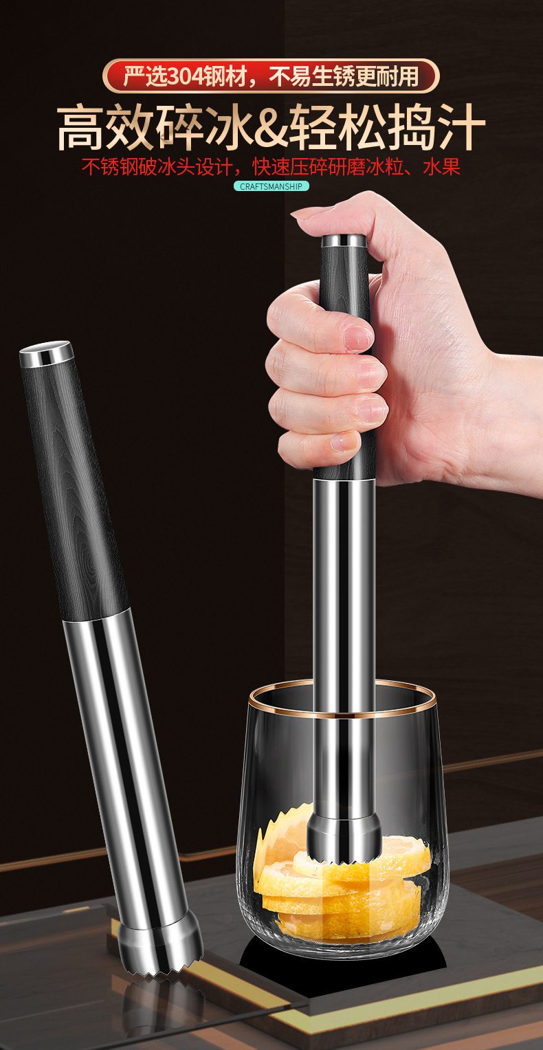 304 스테인레스 스틸 짓 눌린 얼음 스틱 블랙 컬러 나무 스노우 컵 주스 스틱 박동 레몬 도구 수동 과일 주스 스틱
