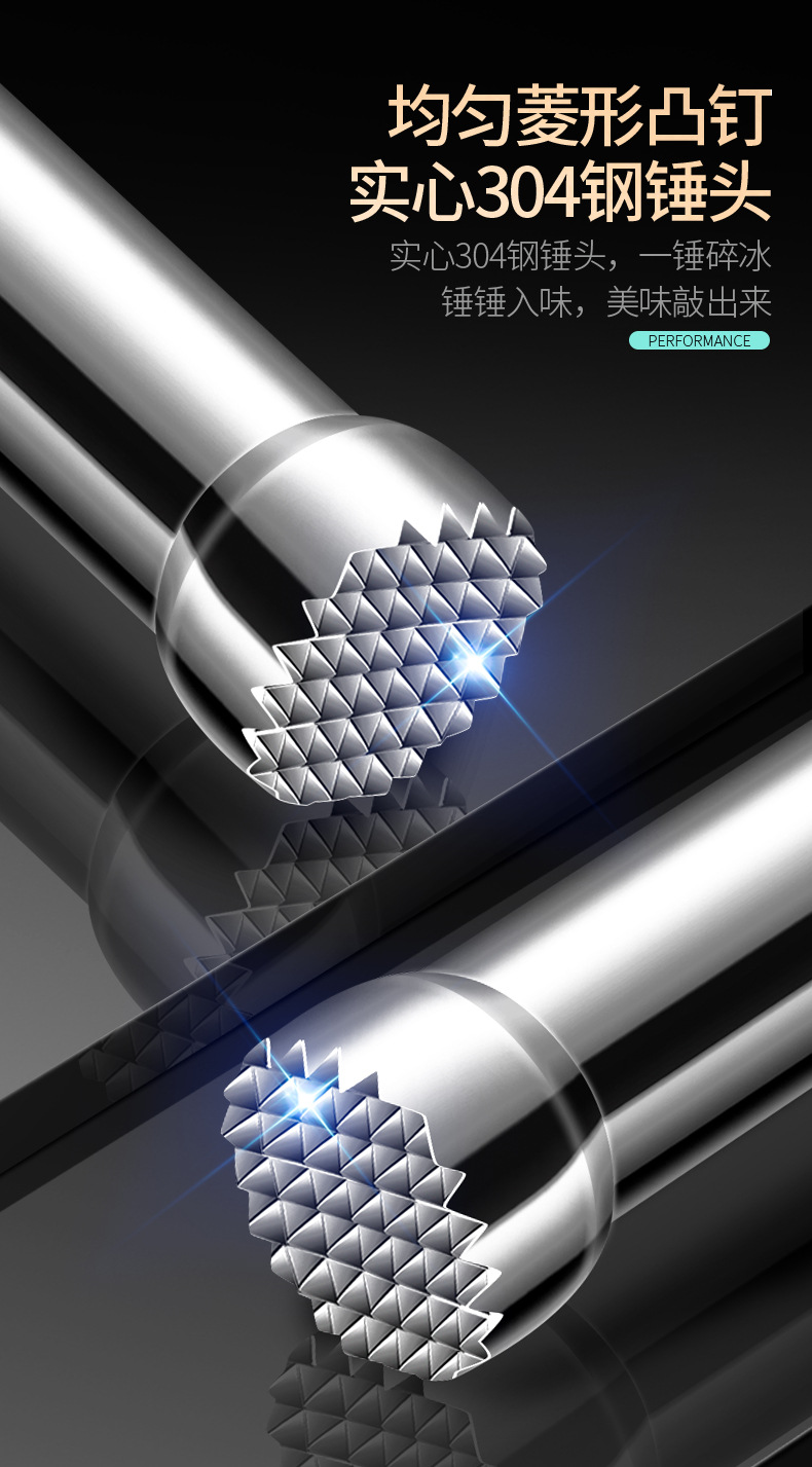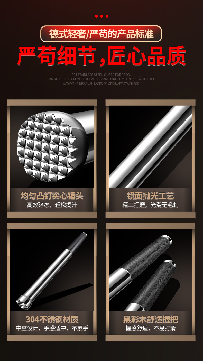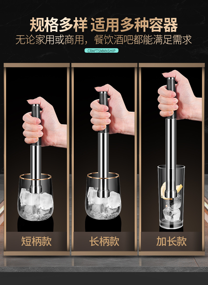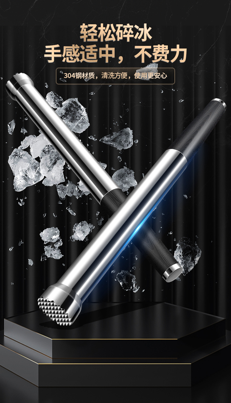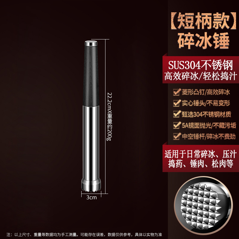• [짧은 손잡이] 304 스틸 블랙 컬러 우드 깨진 아이스 스틱