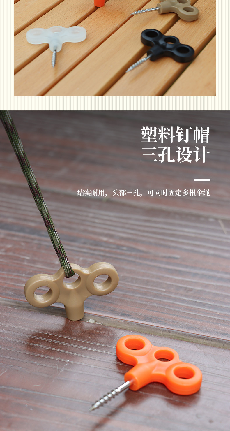 야외 플라스틱 그라운드 네일 야광 텐트 네일 캠핑 방풍 로프 고정 버클 3 눈 스테인레스 스틸 스레드 그라운드 네일 도매스토어 가기