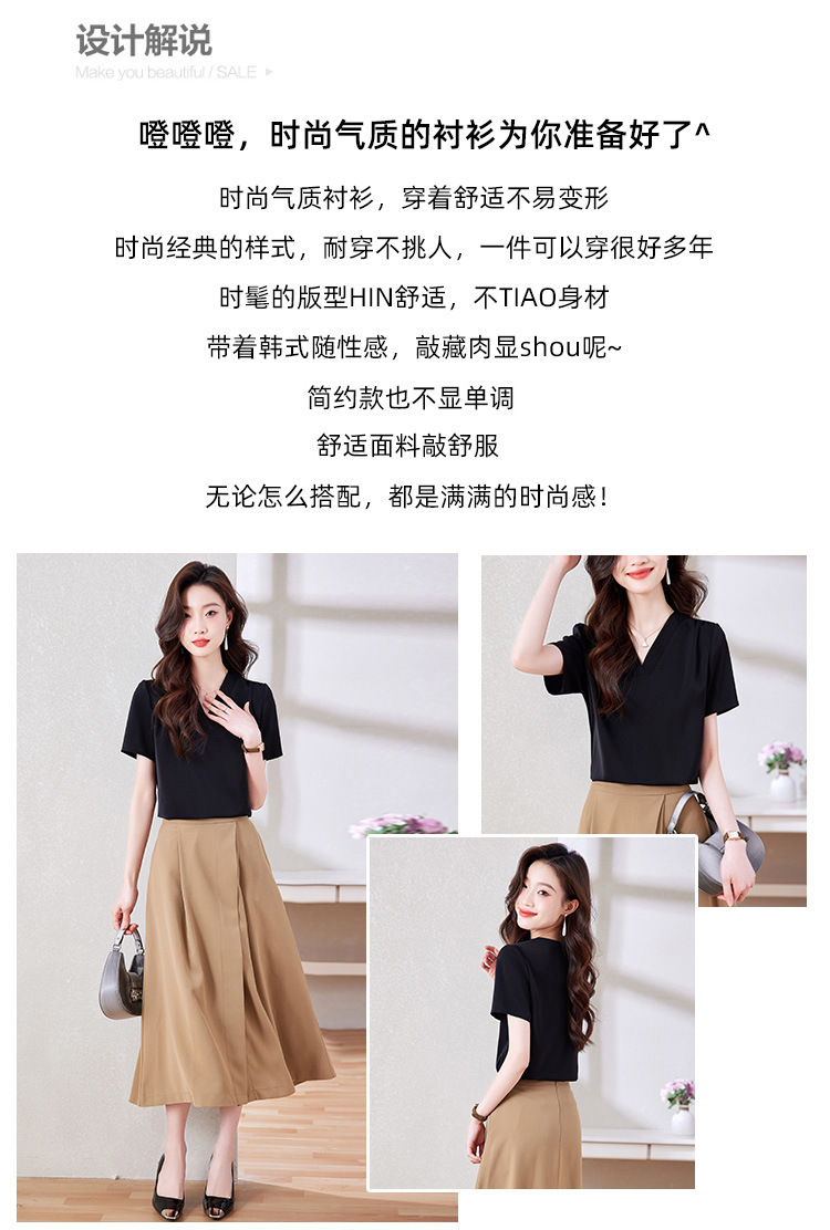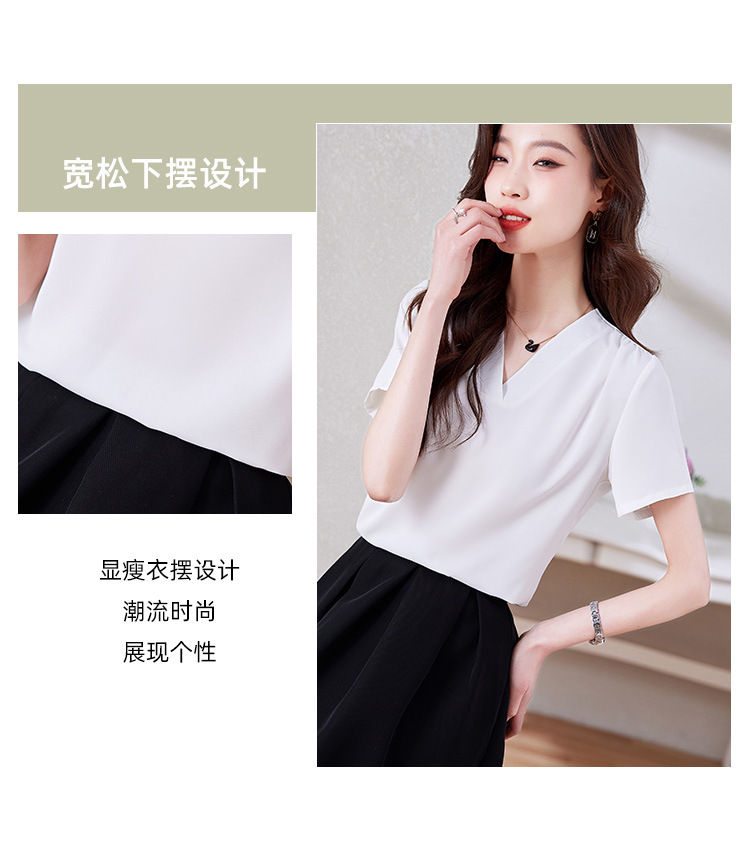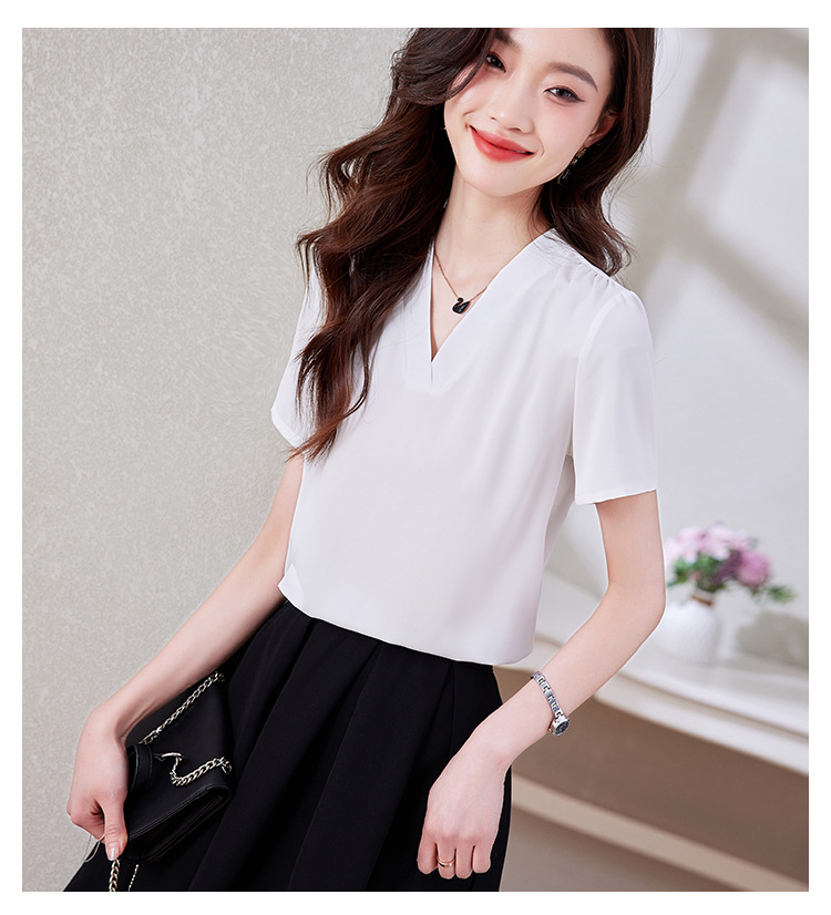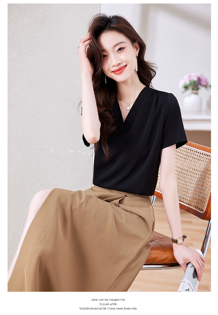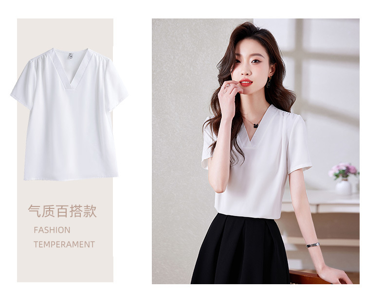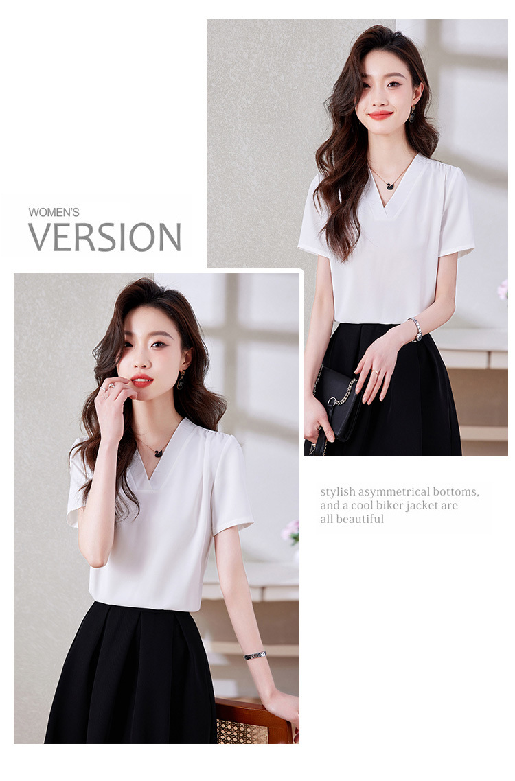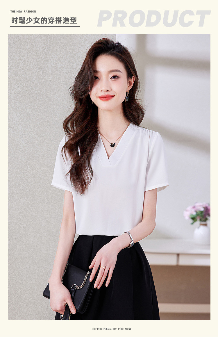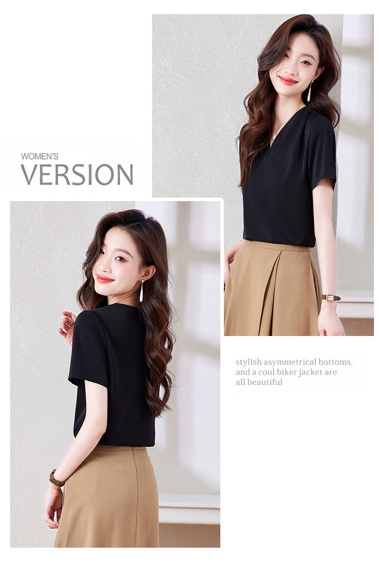 2023 여름 새로운 탑 여성의 심플 뽕나무 실크 단색 플러스 사이즈 V-넥 반팔 티셔츠 시원한 여름스토어 가기