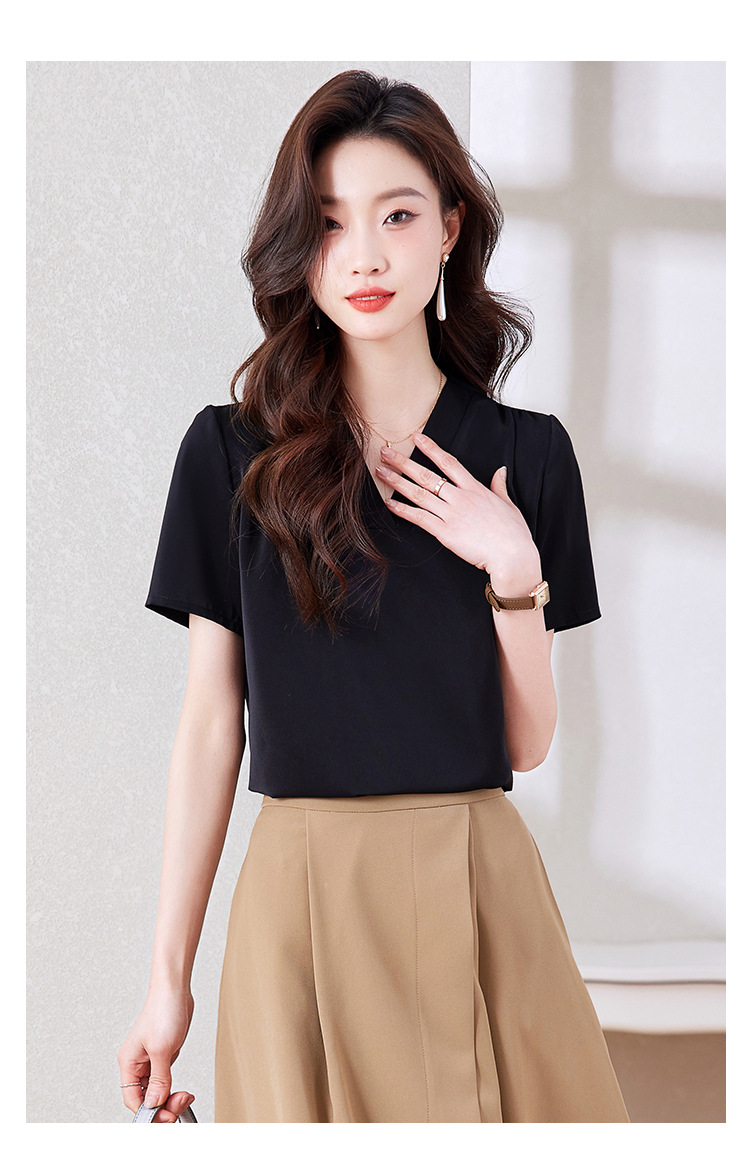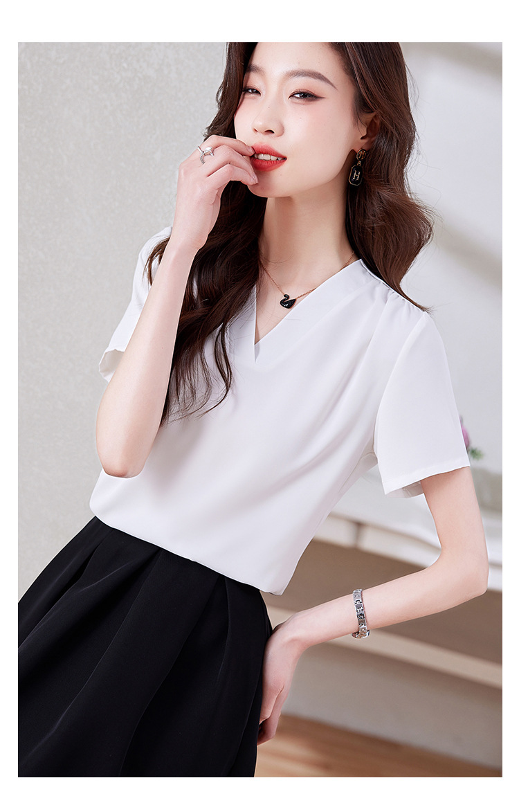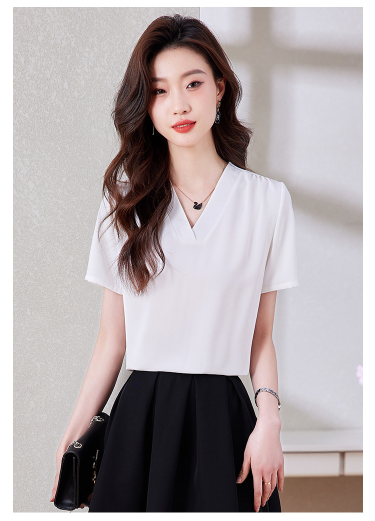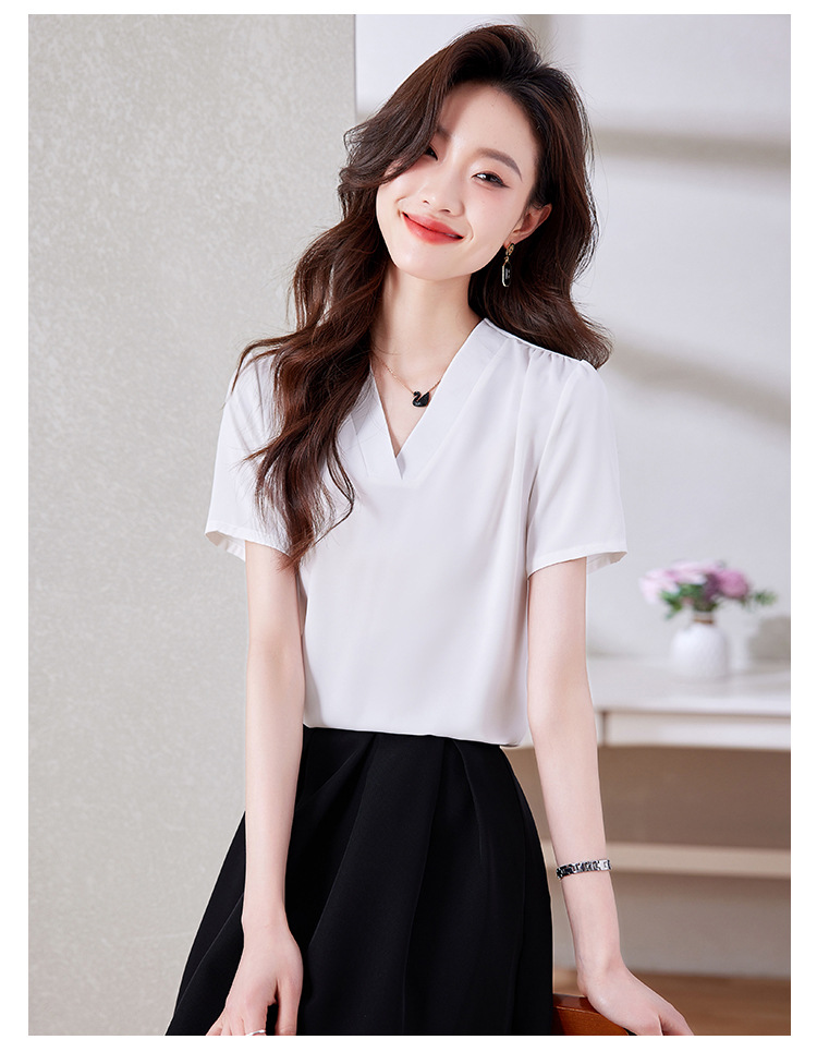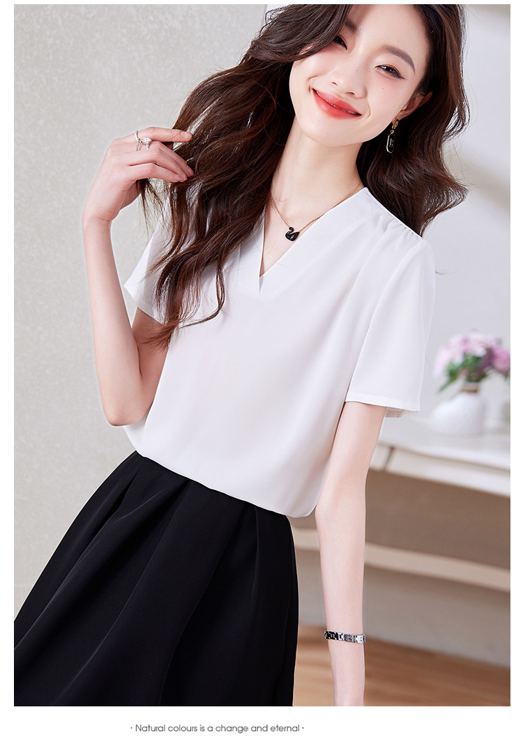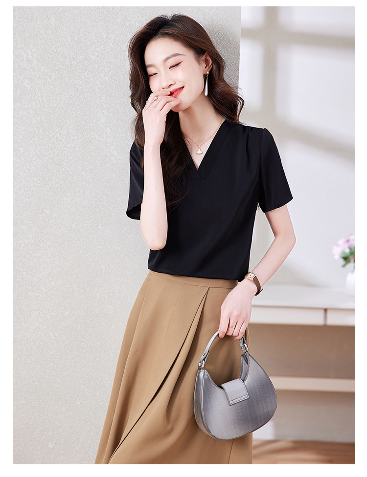 2023 여름 새로운 탑 여성의 심플 뽕나무 실크 단색 플러스 사이즈 V-넥 반팔 티셔츠 시원한 여름스토어 가기