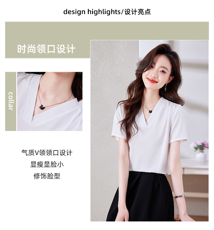 2023 여름 새로운 탑 여성의 심플 뽕나무 실크 단색 플러스 사이즈 V-넥 반팔 티셔츠 시원한 여름