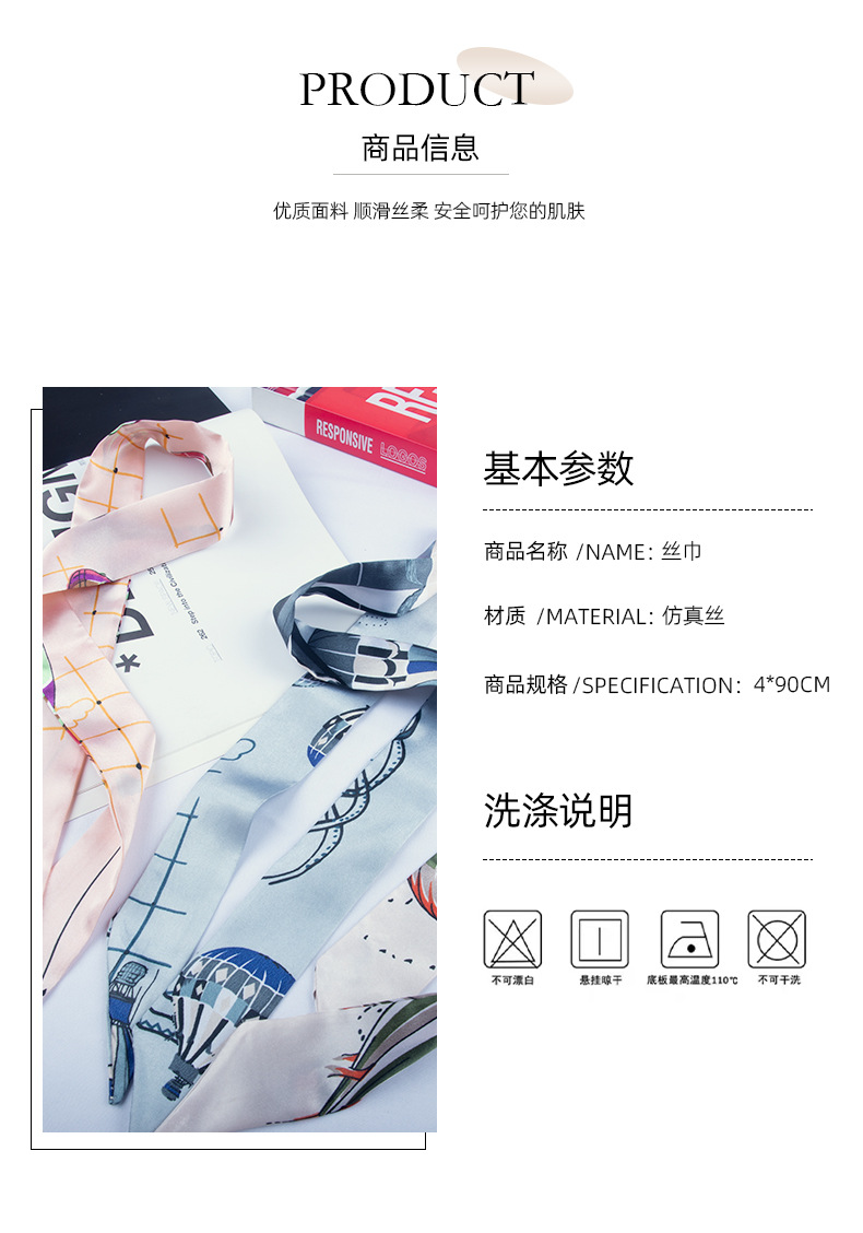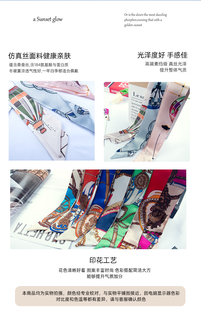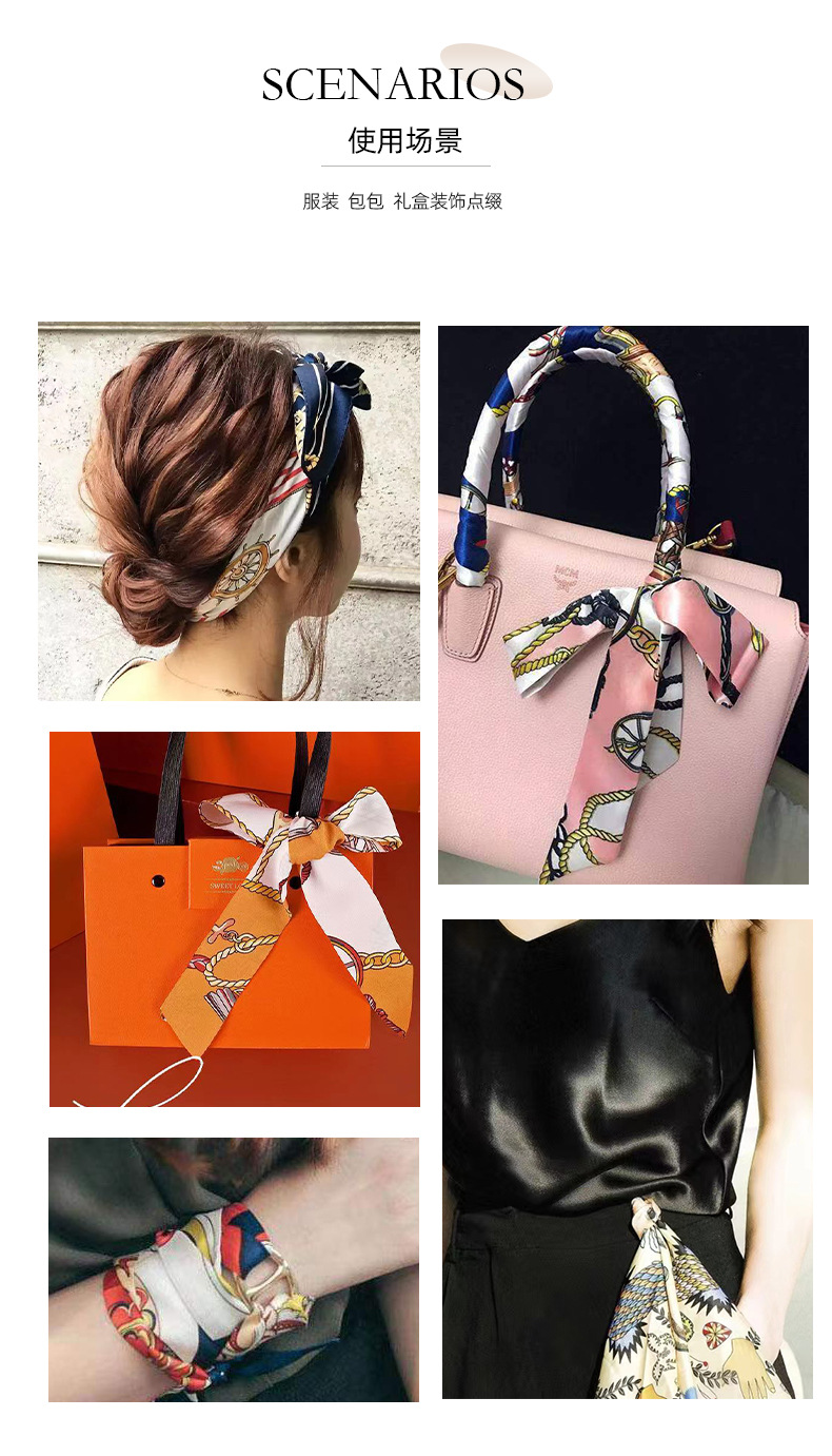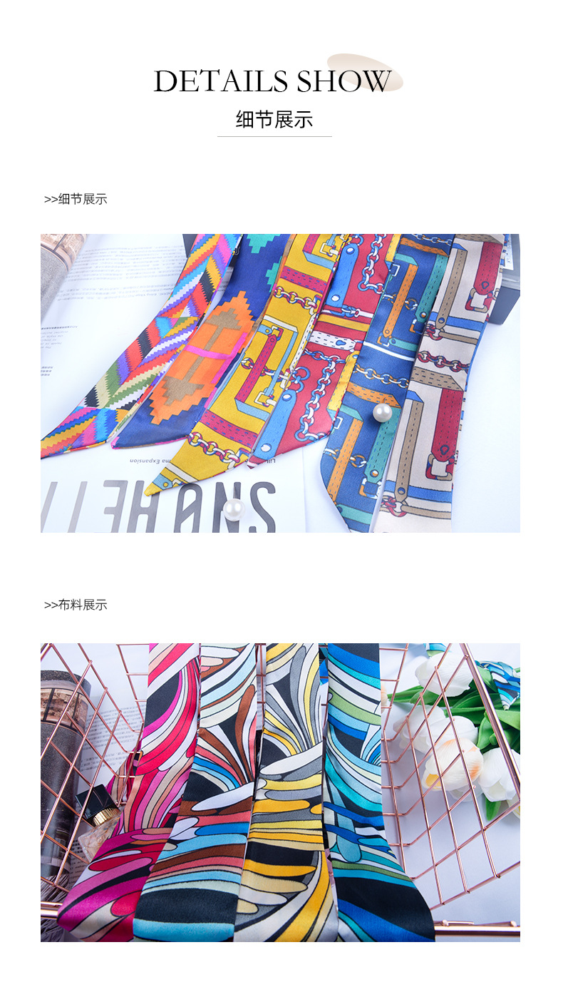 OPP 개별 포장 작은 실크 스카프 좁은 긴 실크 스카프 작은 스카프 가방 스카프 장식 실크 스카프 헤어 밴드
