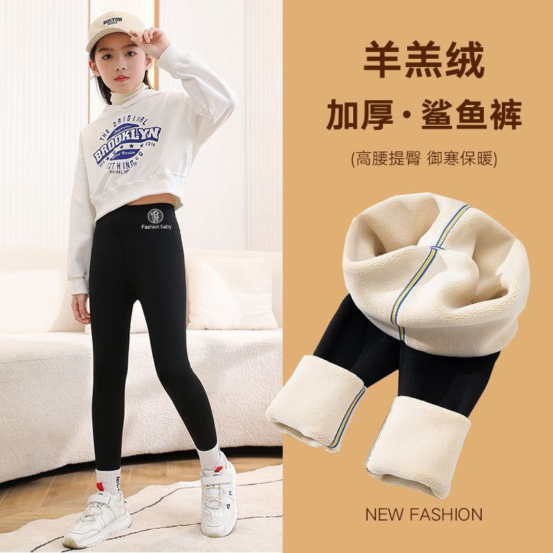 소녀 2024 가을 겨울 상어 바지 소녀 바지 다리 나일론 어린이 바비 바지 기모 두꺼운 외복스토어 가기