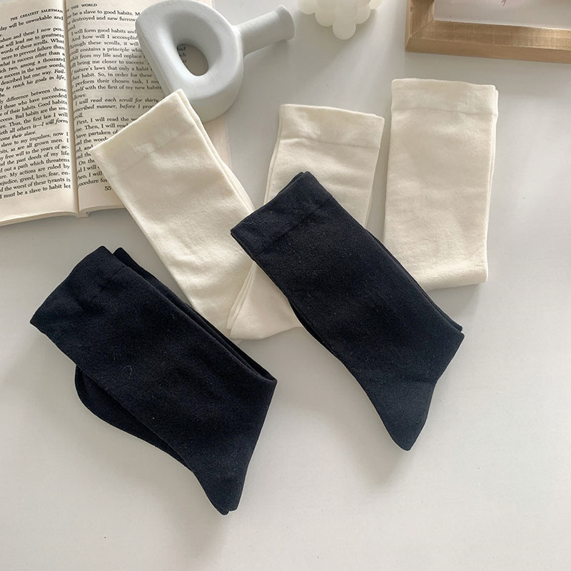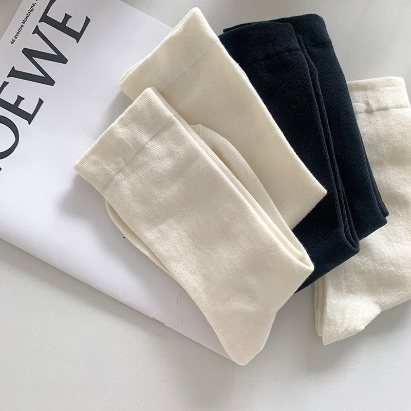 심플한 흰색 뼈없는 양말 여성용 중간 길이 양말 봄과 가을 일본식 단색 파일 양말 여성용 모든 매치 편안한 스타킹스토어 가기