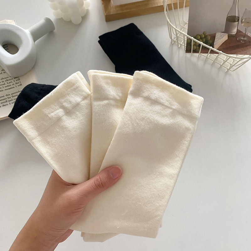 심플한 흰색 뼈없는 양말 여성용 중간 길이 양말 봄과 가을 일본식 단색 파일 양말 여성용 모든 매치 편안한 스타킹