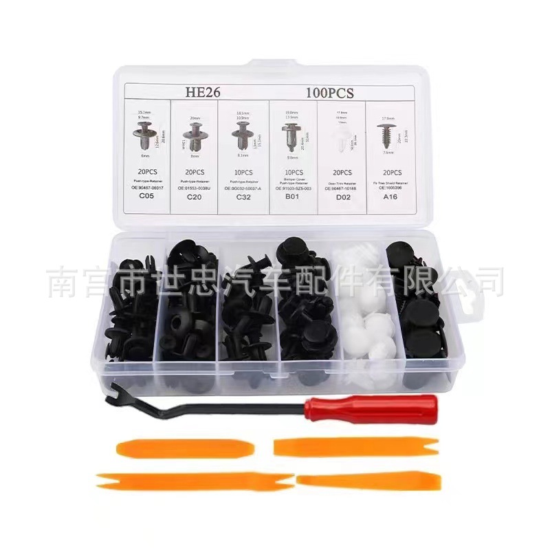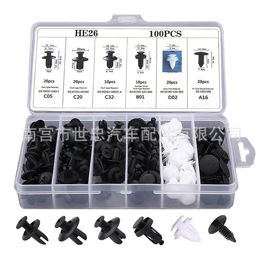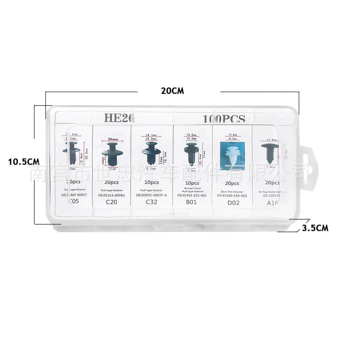 100PC 박스형 자동차 버클 박스형 100PCS 콤비네이션 세트 나일론 클립 범퍼 버클