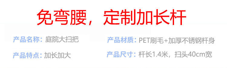 61K3 안뜰 긴로드 긴 손잡이 초대형 빗자루 단일 부드러운 양모 청소 빗자루 가정용 실내 야외 안뜰 하드 헤어