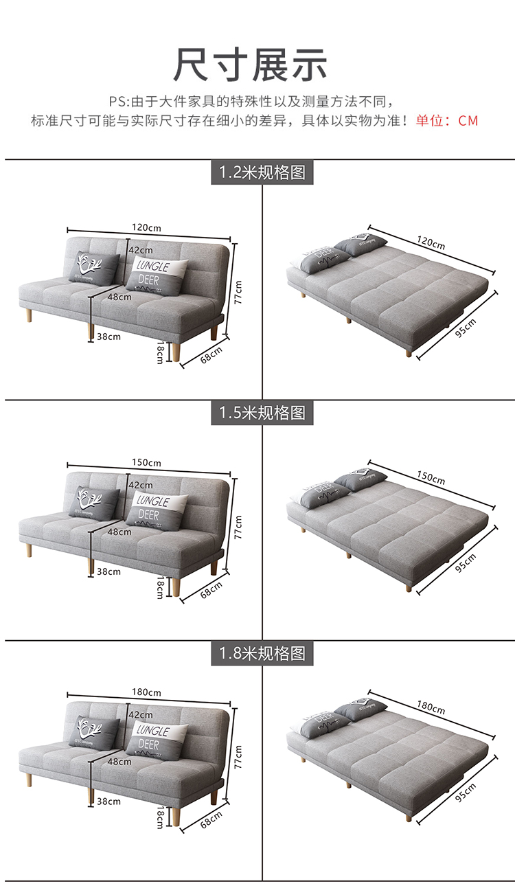 기술 천 소파 거실 작은 아파트 임대실 의류 매장 더블 접이식 다기능 이중 사용 패브릭 소파