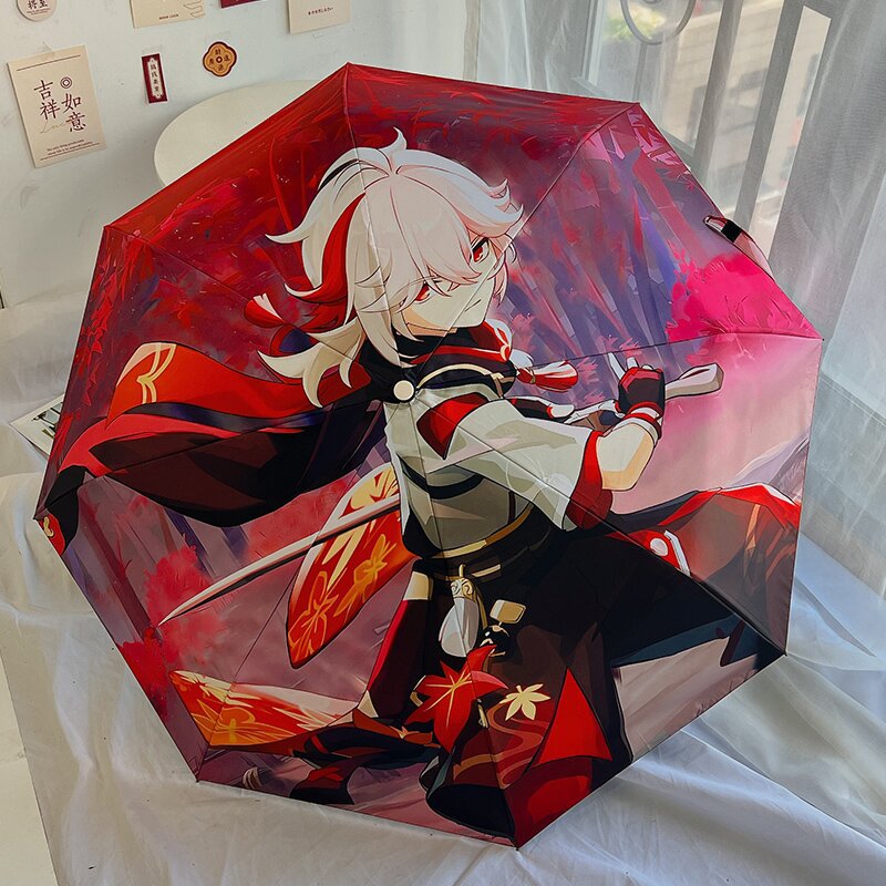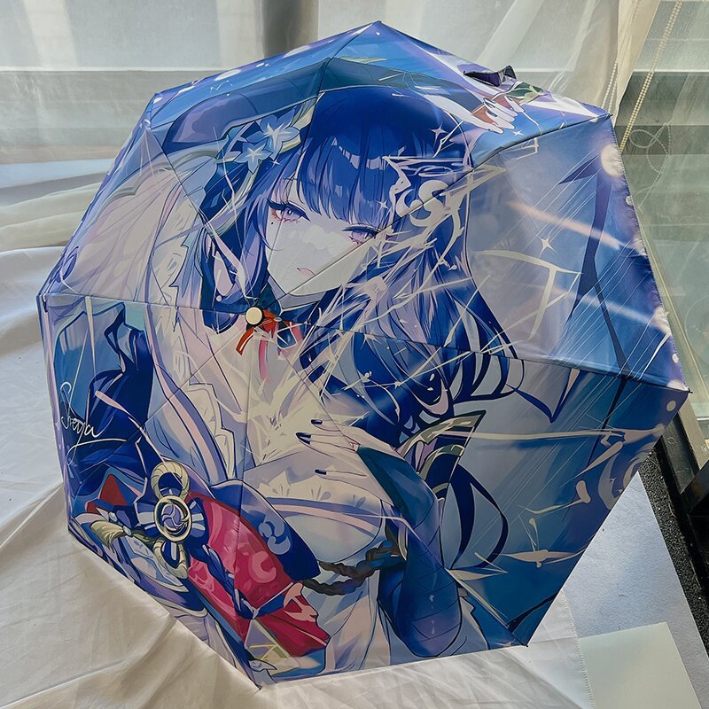 원래 신의 어린이 만화 애니메이션 우산 자동 학생 우산 여자의 귀여운 맑고 비오는 이중 사용 접는 검은 고무 차양스토어 가기