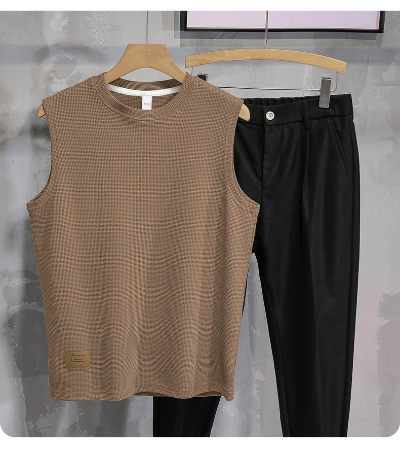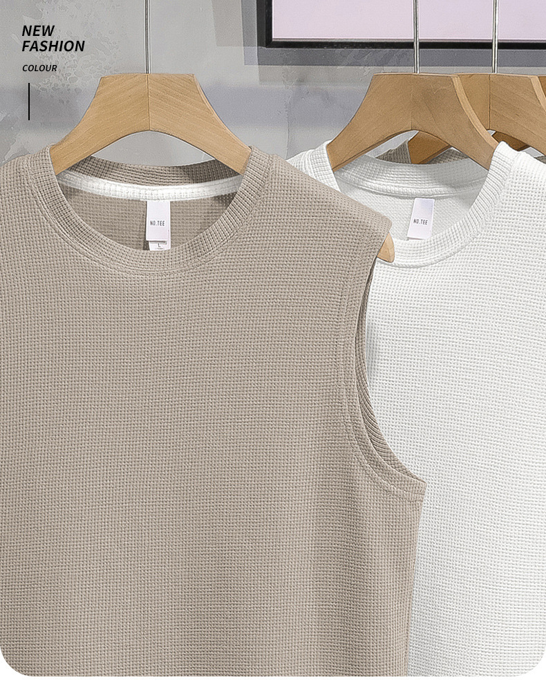 무거운 와플 조끼 남자의 여름 얇은 통기성 피트니스 스포츠 농구 허리띠 허들 단색 민소매 티셔츠
