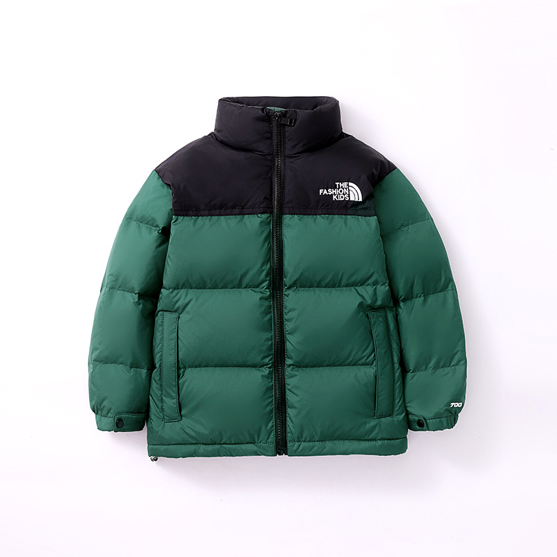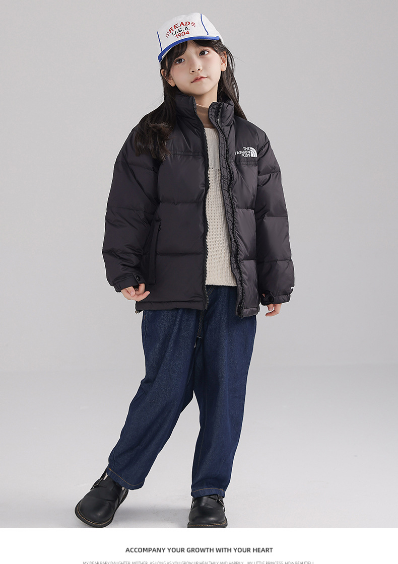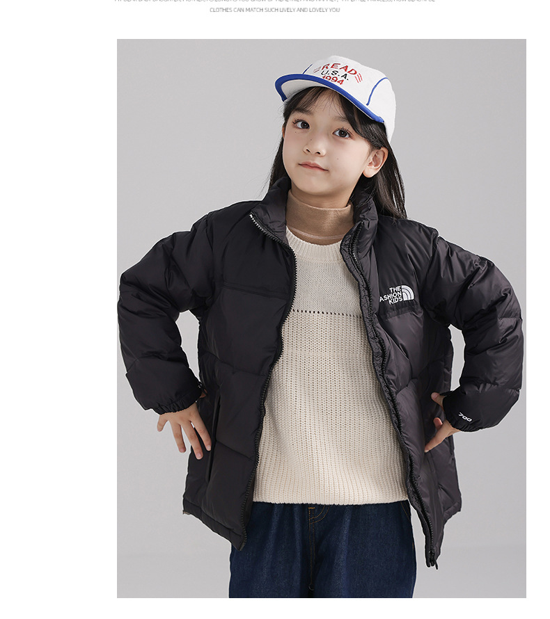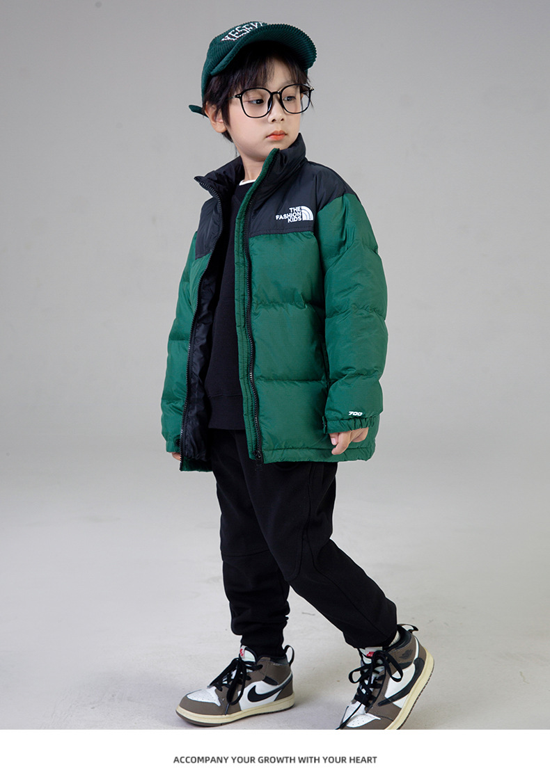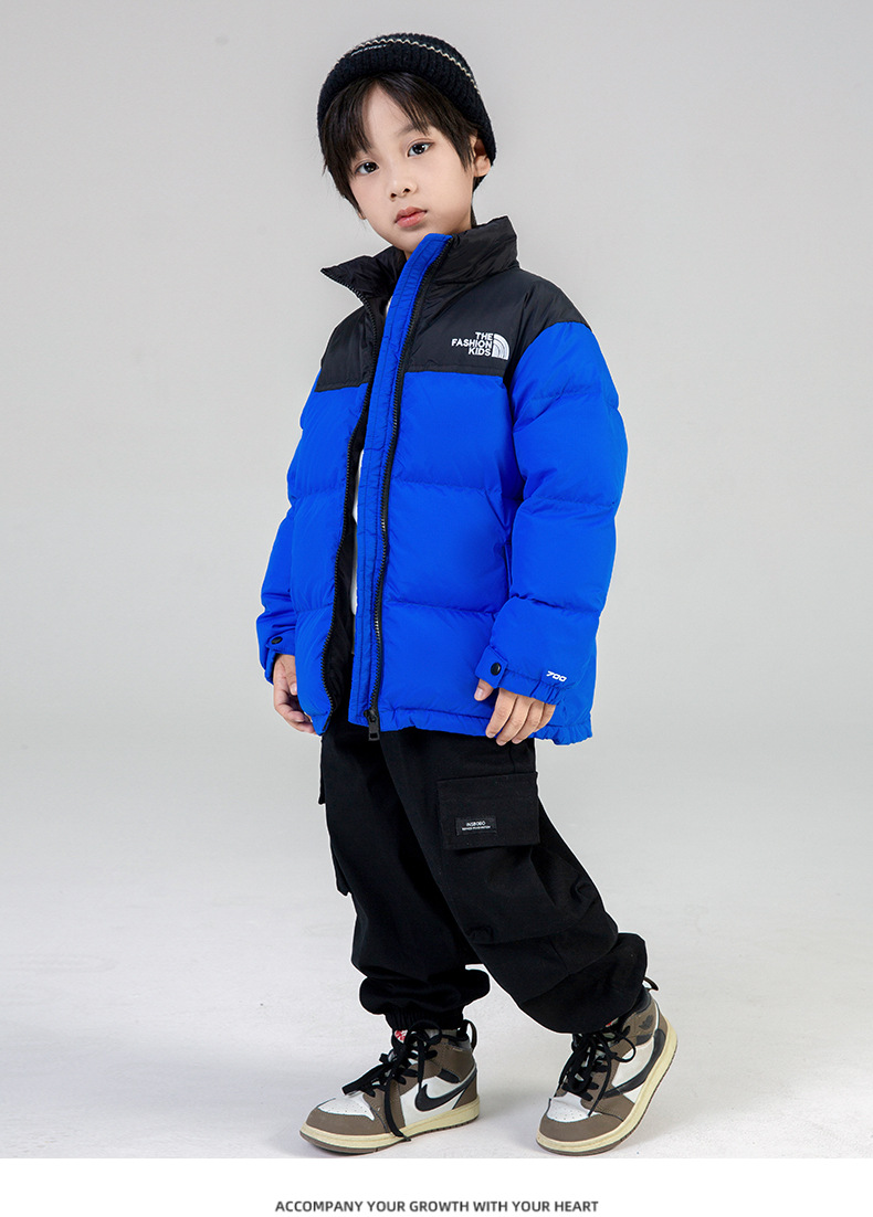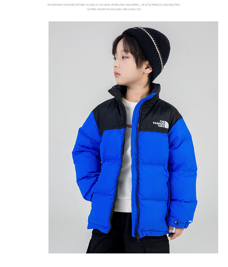 어린이용 다운 재킷 2025 신상 컬러블록 두꺼운 남아 여아 중대형 어린이용 짧은 스타일 스탠드 칼라 다운 겨울 재킷스토어 가기