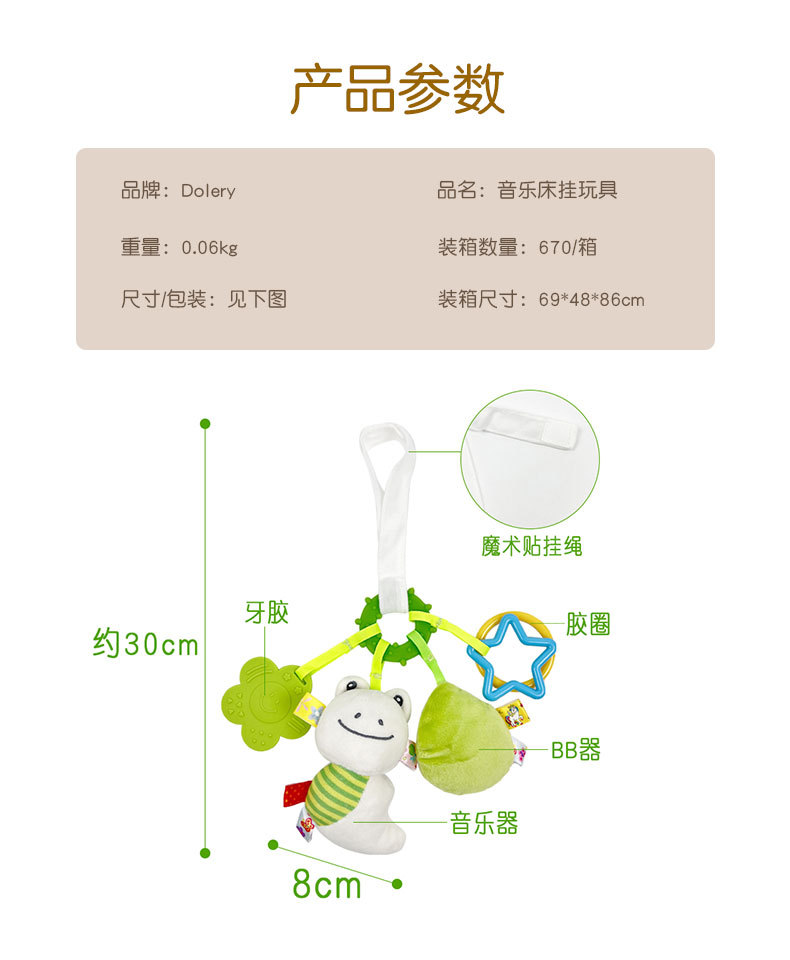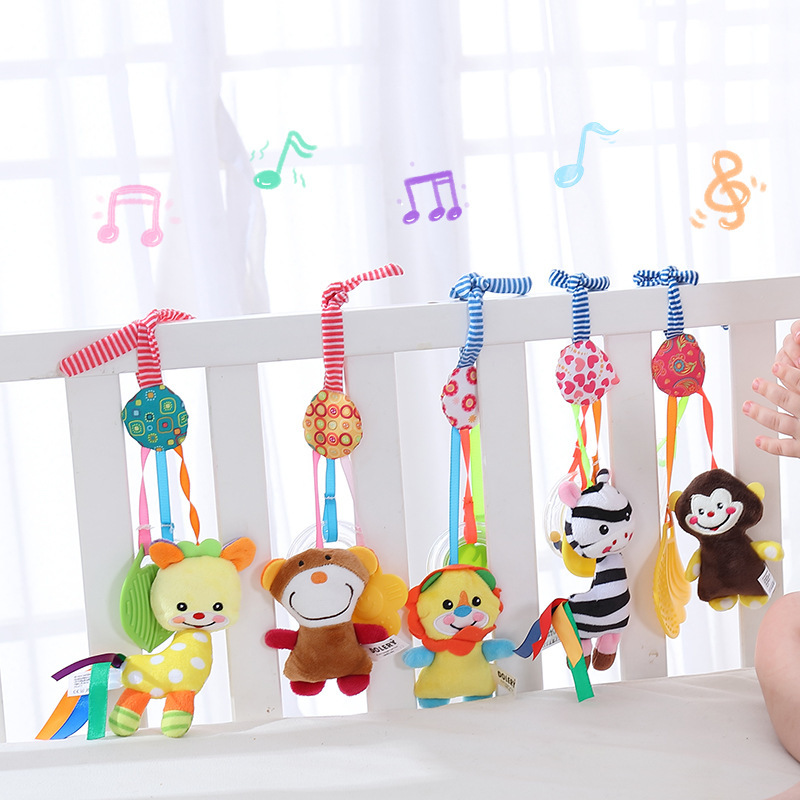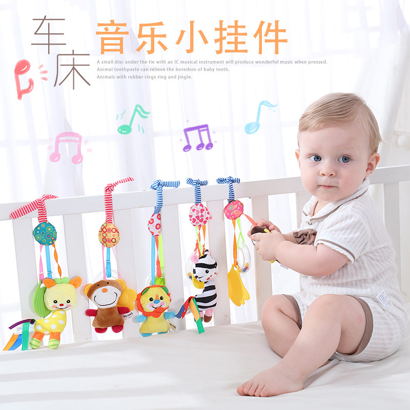 Dolery 유모차 침대 교수형 고무 링 딸랑이 음악 작은 침대 교수형 0-1 세 아기 유모차 펜던트 장난감