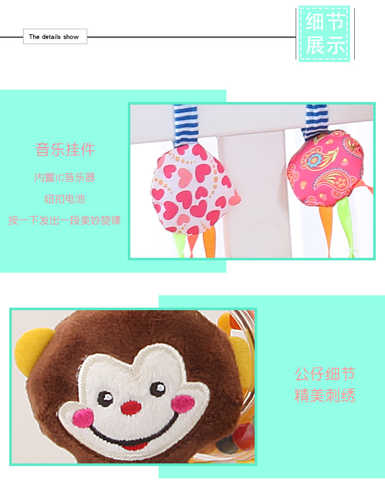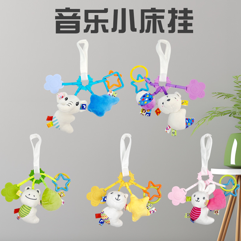 Dolery 유모차 침대 교수형 고무 링 딸랑이 음악 작은 침대 교수형 0-1 세 아기 유모차 펜던트 장난감스토어 가기