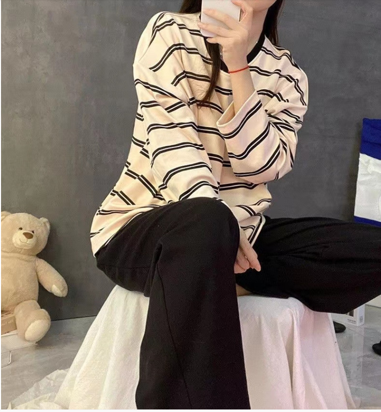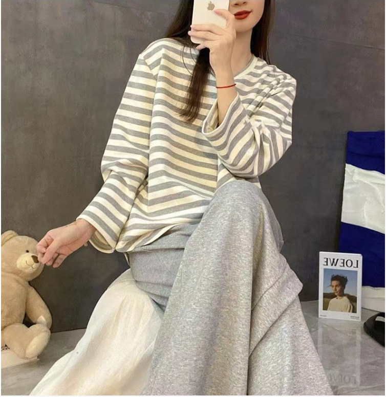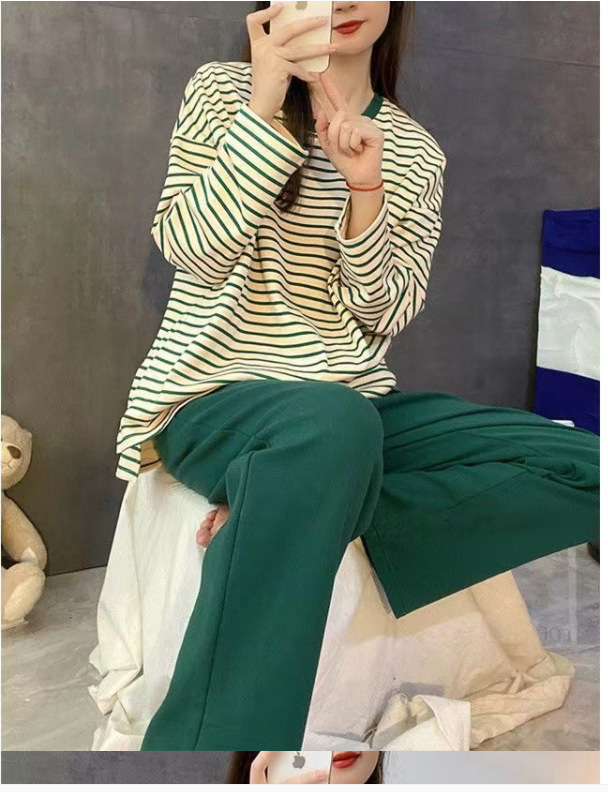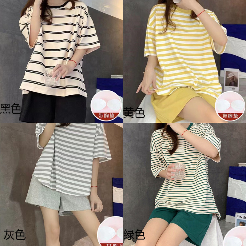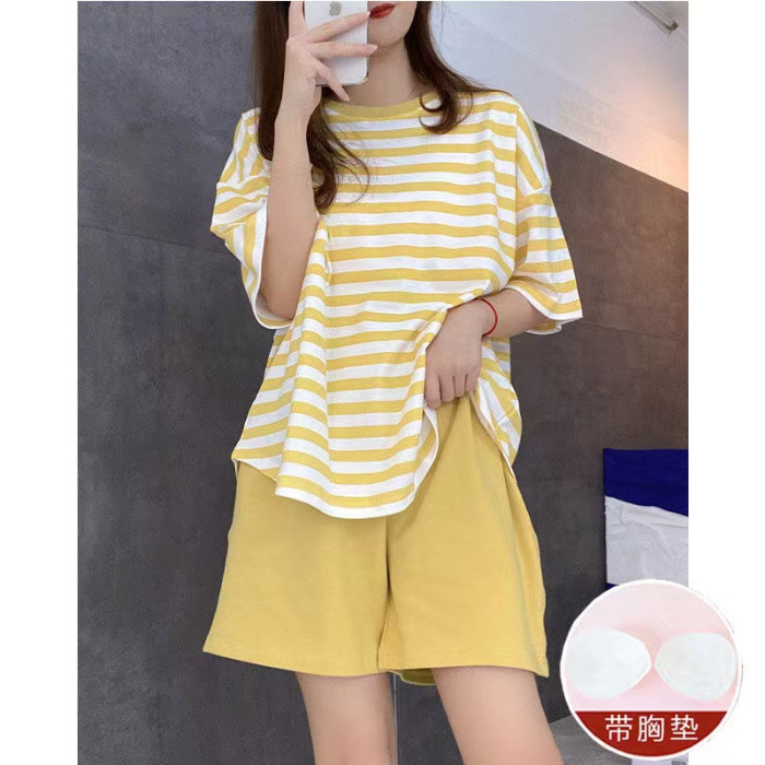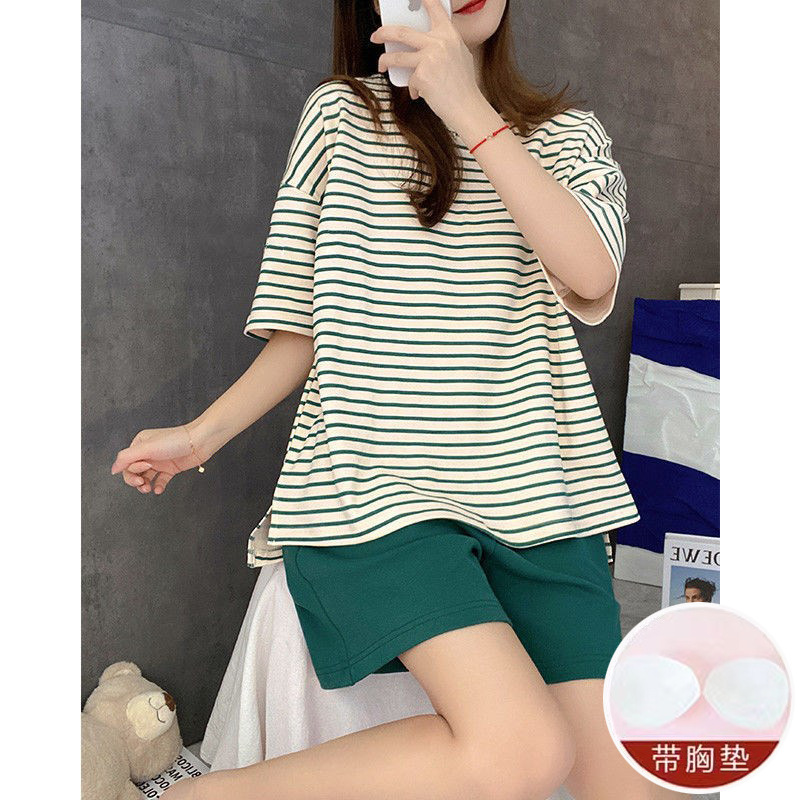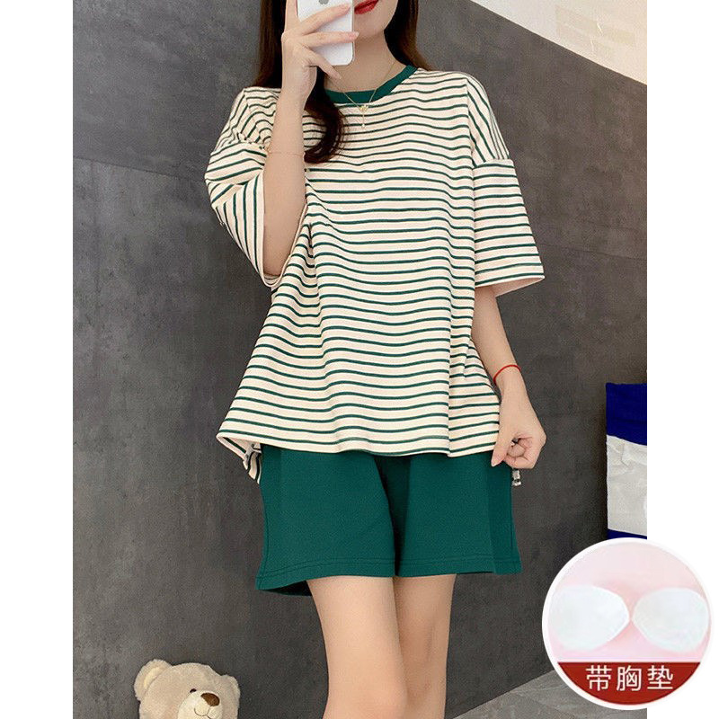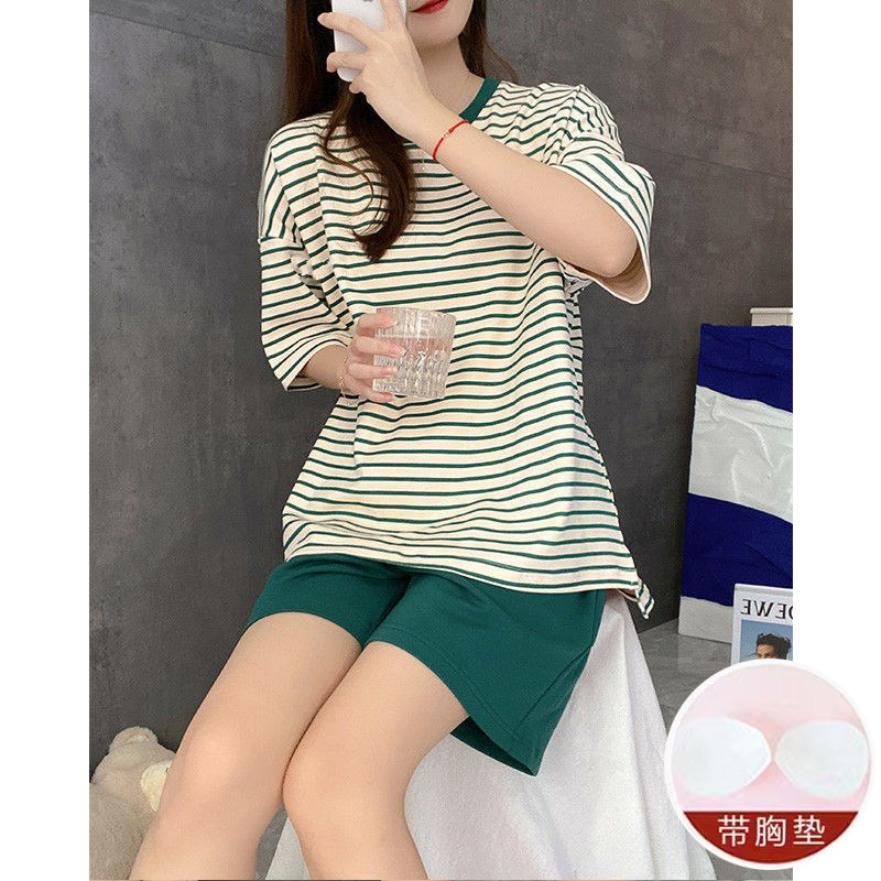 2023 년 여름 새 여성 줄무늬 반팔 반팔 반바지 가슴 패드
