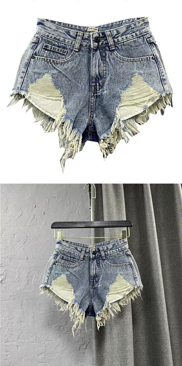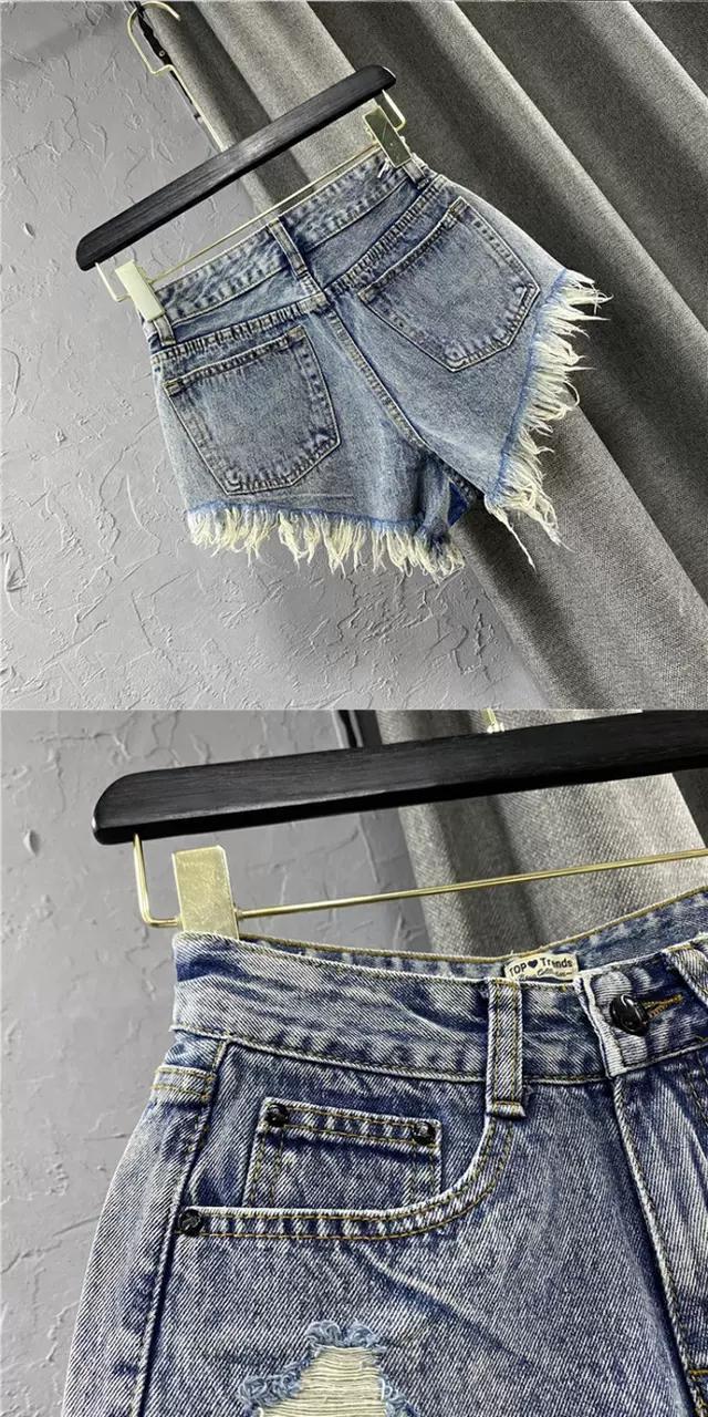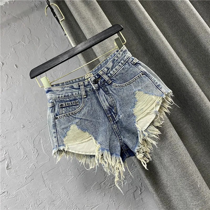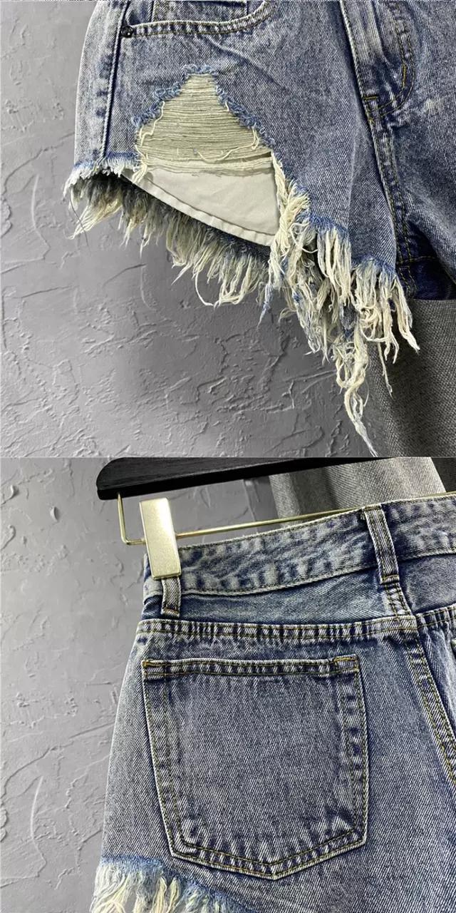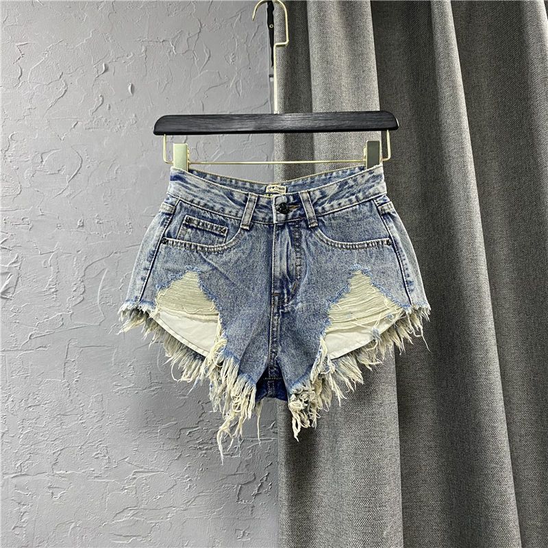유럽과 미국 여성의 슬림 핏 찢어진 오픈 포켓 술 버 레트로 컬러 데님 반바지 섹시한 낮은 허리 A 라인 핫 팬츠스토어 가기