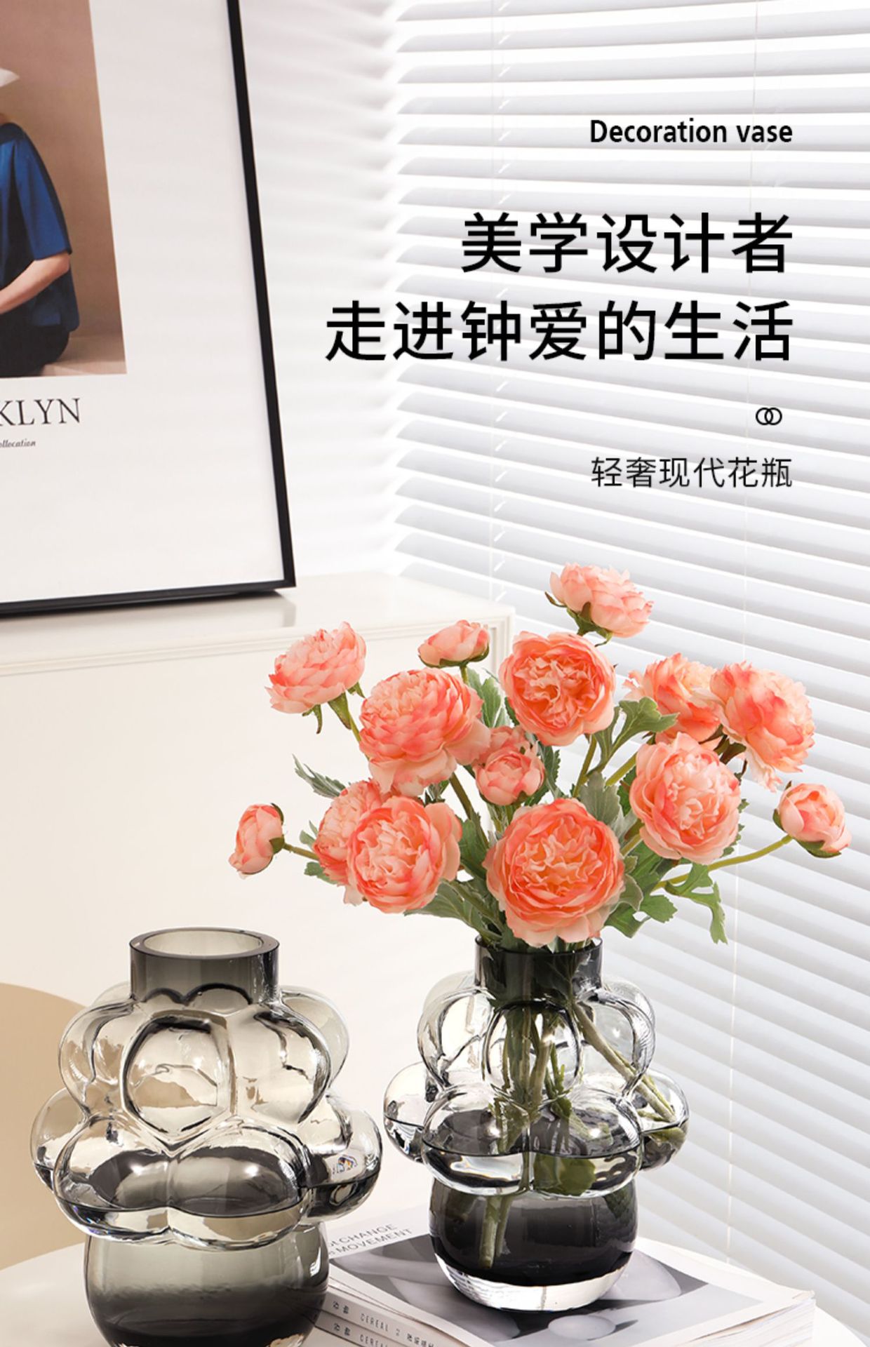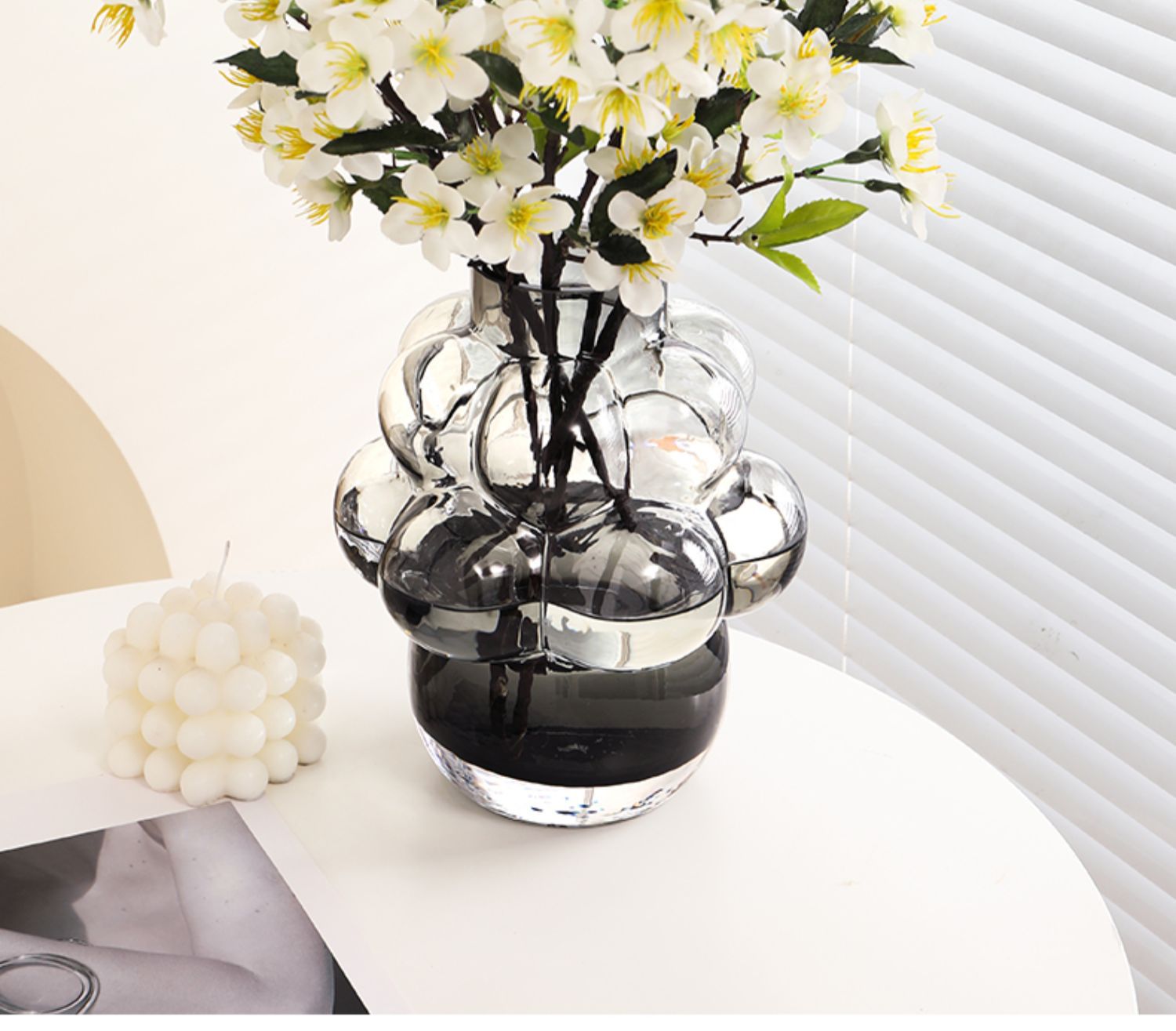 고급 차가운 회색 포도 모양의 유리 꽃병 수경 재배 거실 식탁 꽃꽂이 장식 가정 용품