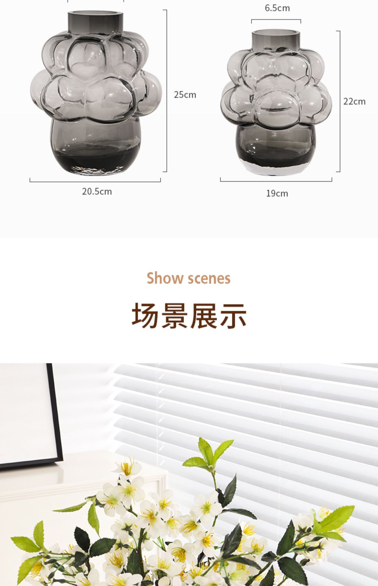 고급 차가운 회색 포도 모양의 유리 꽃병 수경 재배 거실 식탁 꽃꽂이 장식 가정 용품스토어 가기