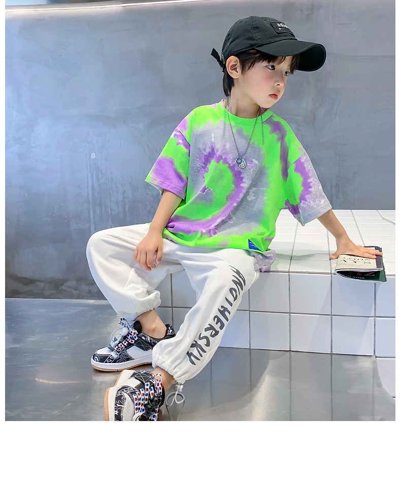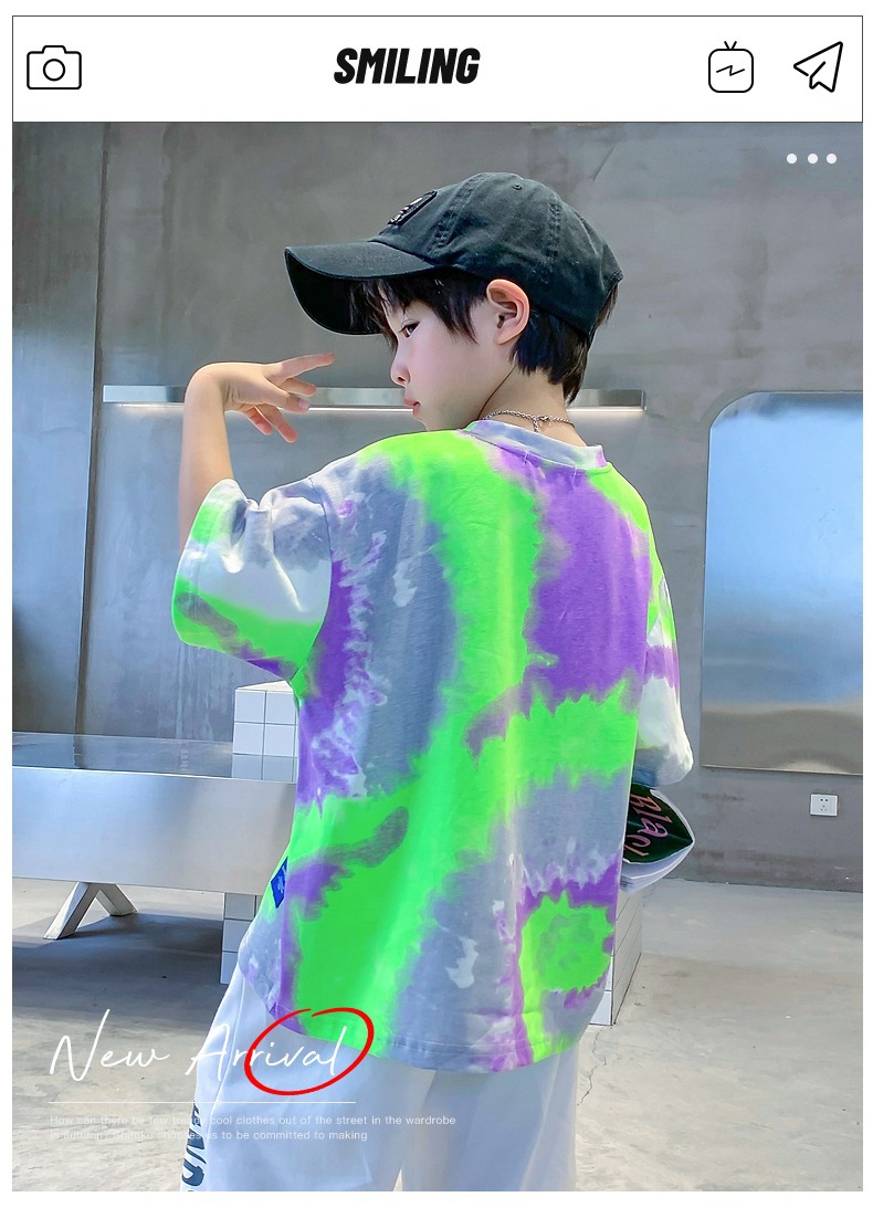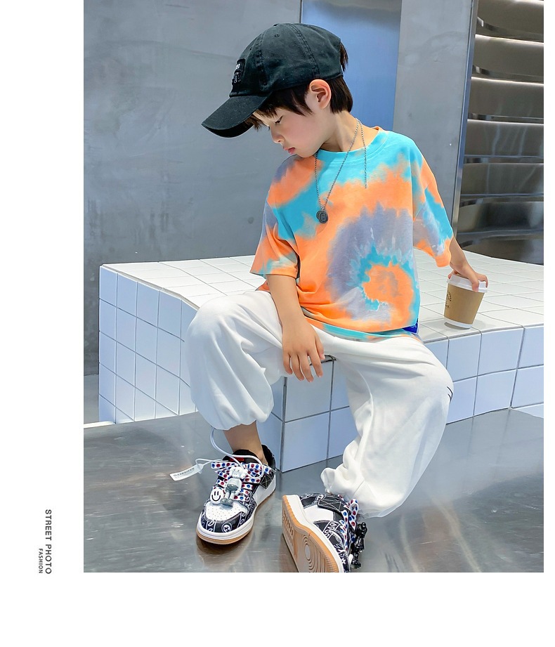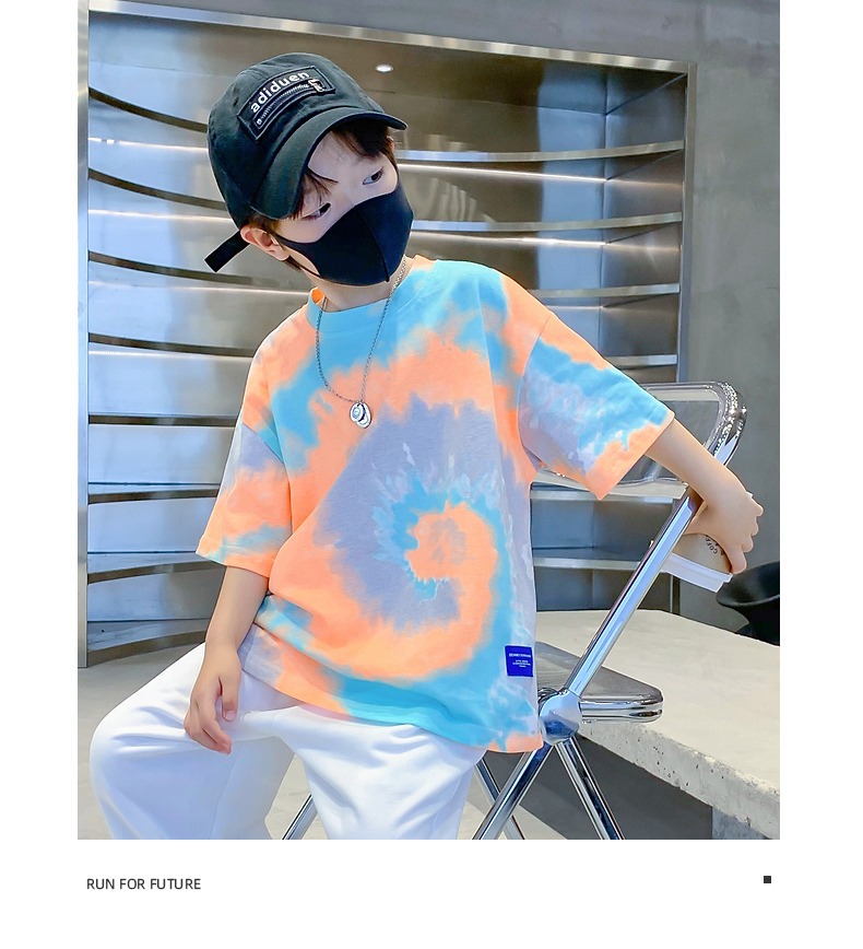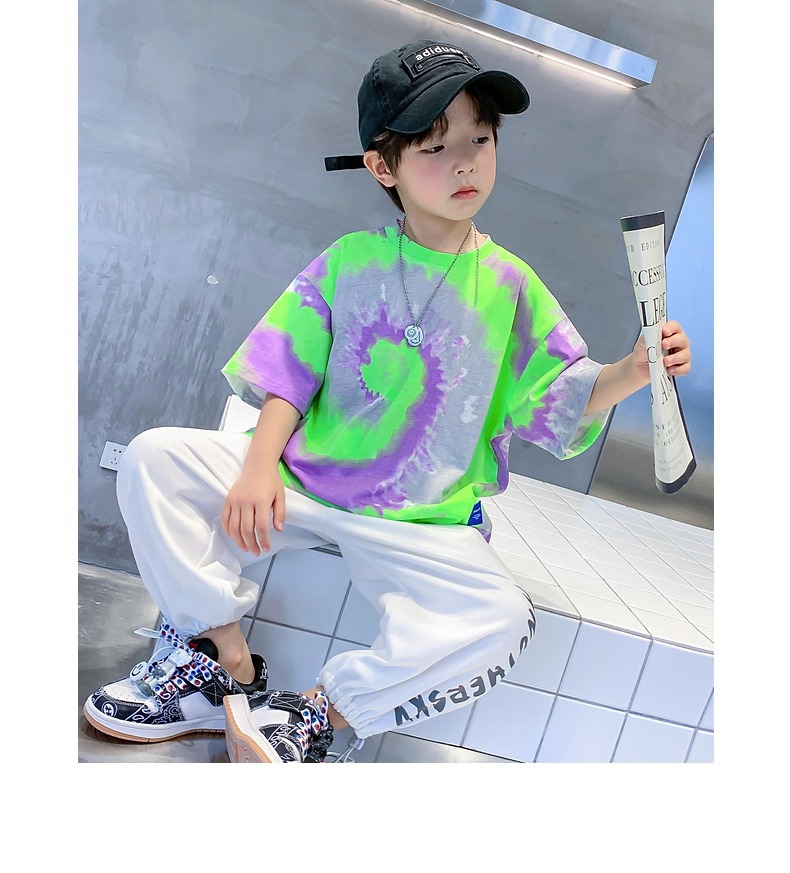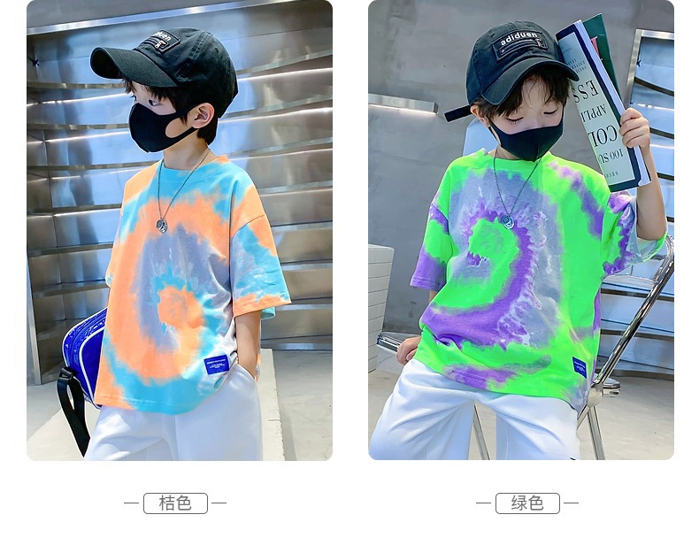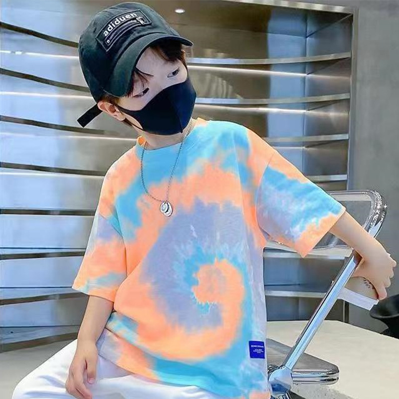 소년 넥타이 염색면 반팔 티셔츠 여름 새로운 대형 어린이 바닥 셔츠 어린이 느슨한 프라이드 스트리트 탑 도매스토어 가기