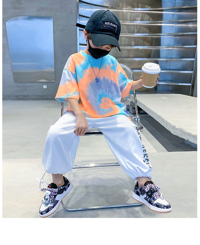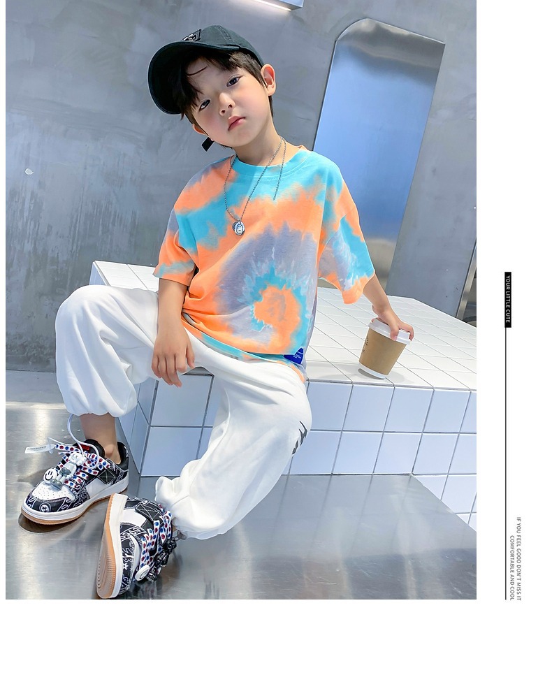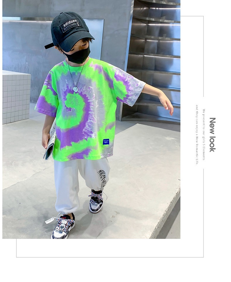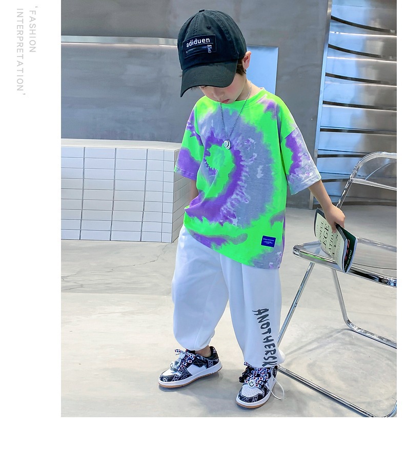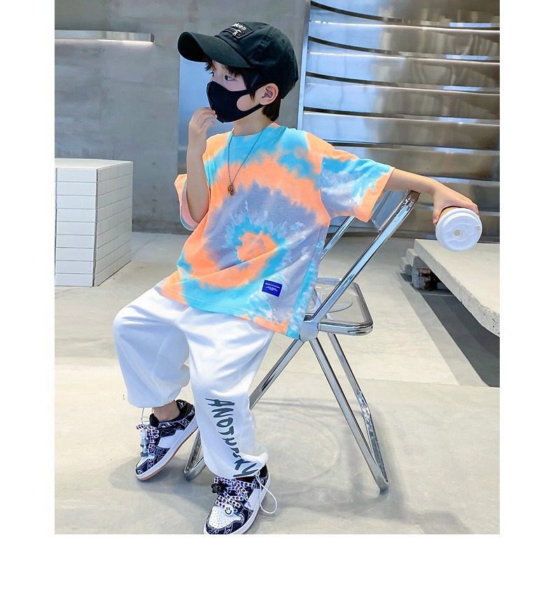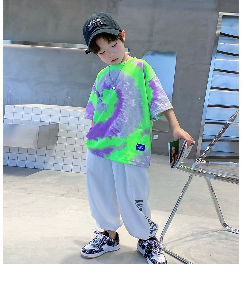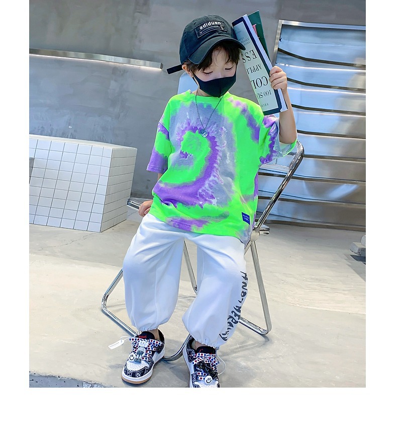 소년 넥타이 염색면 반팔 티셔츠 여름 새로운 대형 어린이 바닥 셔츠 어린이 느슨한 프라이드 스트리트 탑 도매스토어 가기
