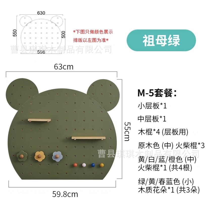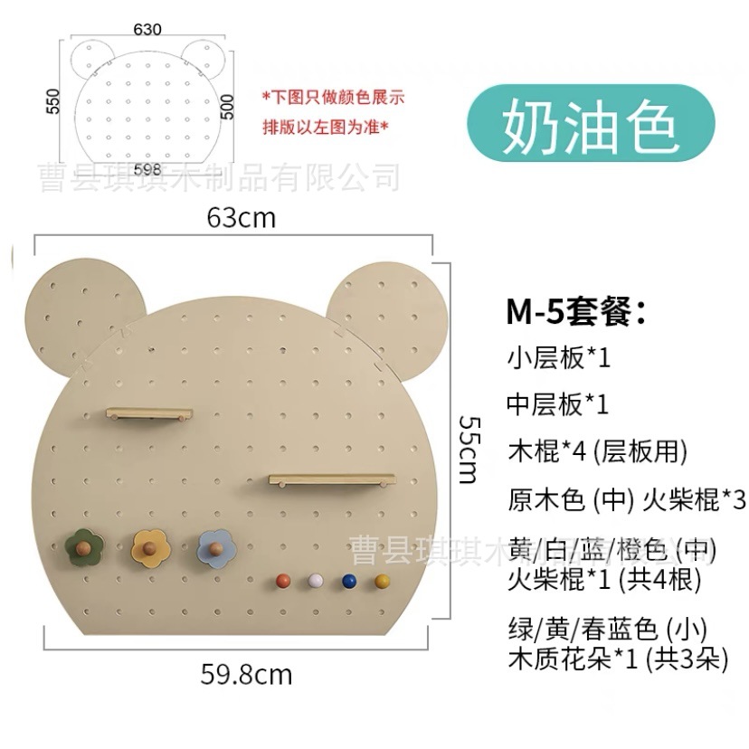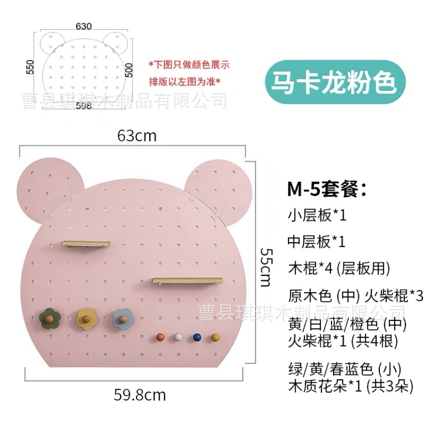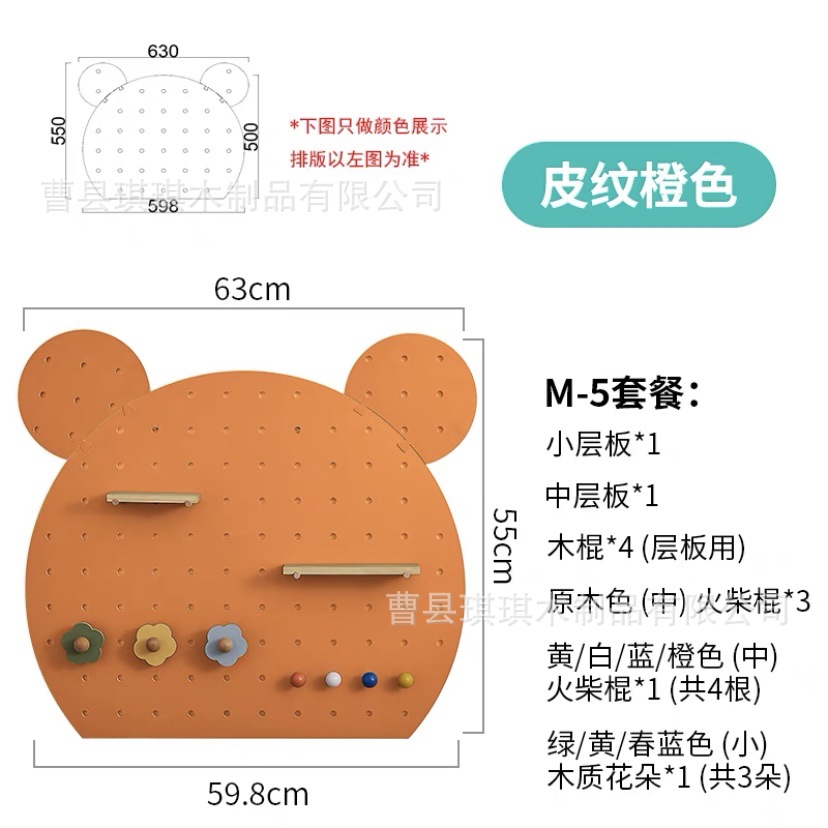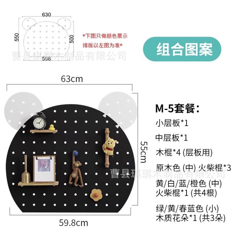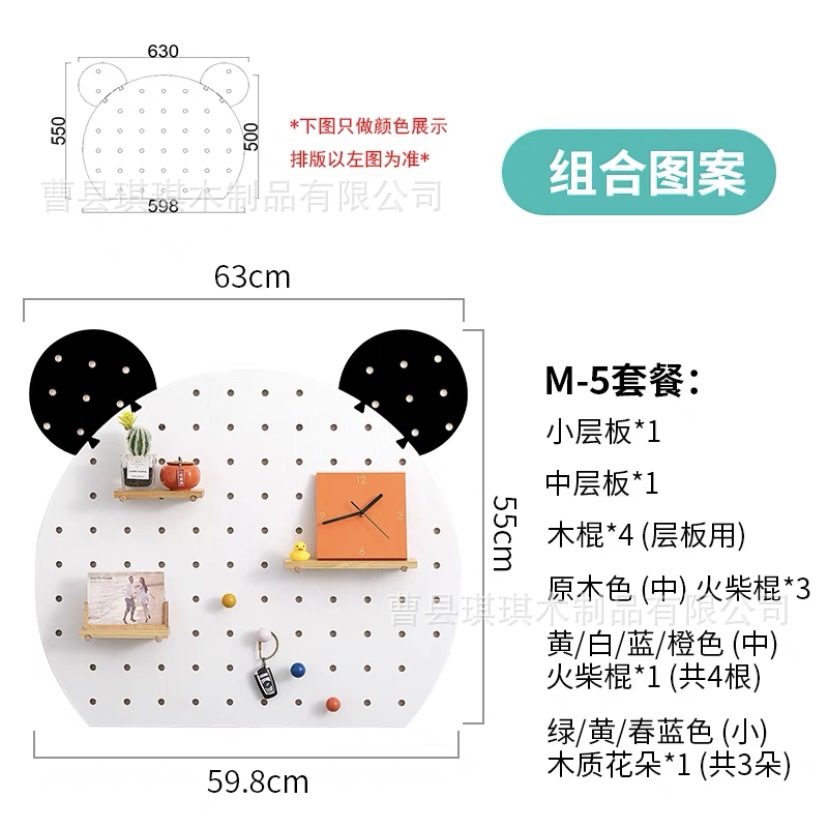 만화 모양의 팬더 나무 구멍 보드 특수 모양의 색상 나무 가정용 벽 보관 랙