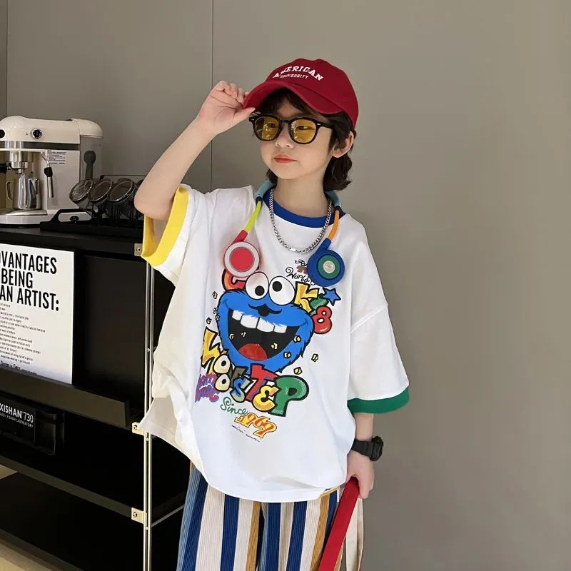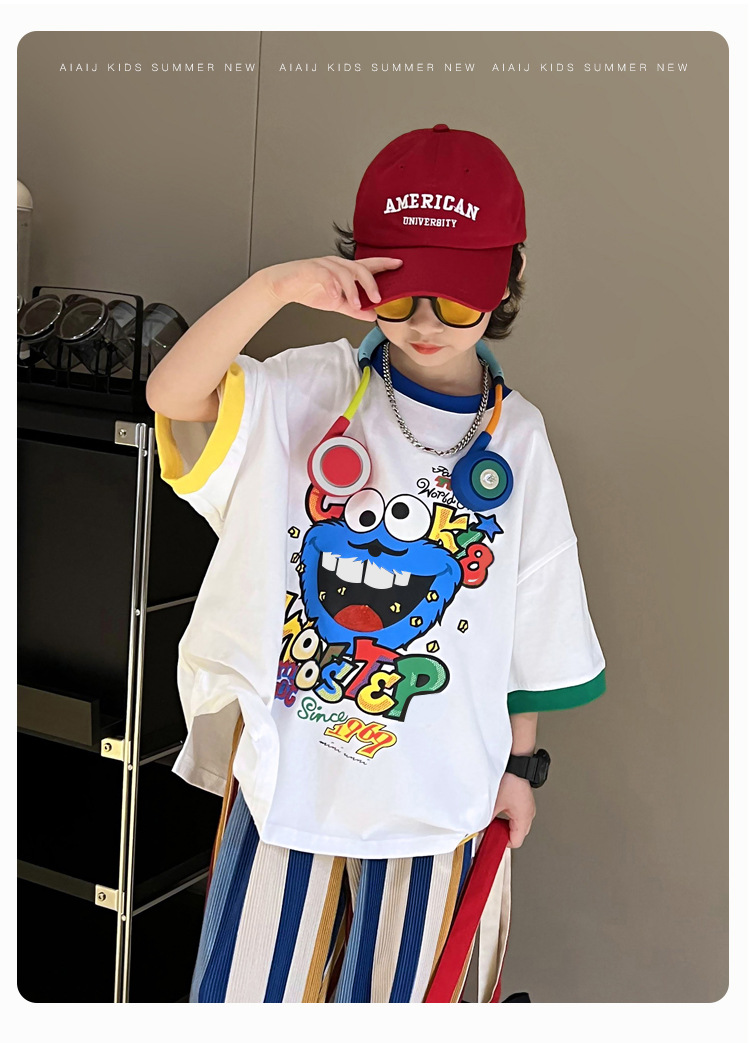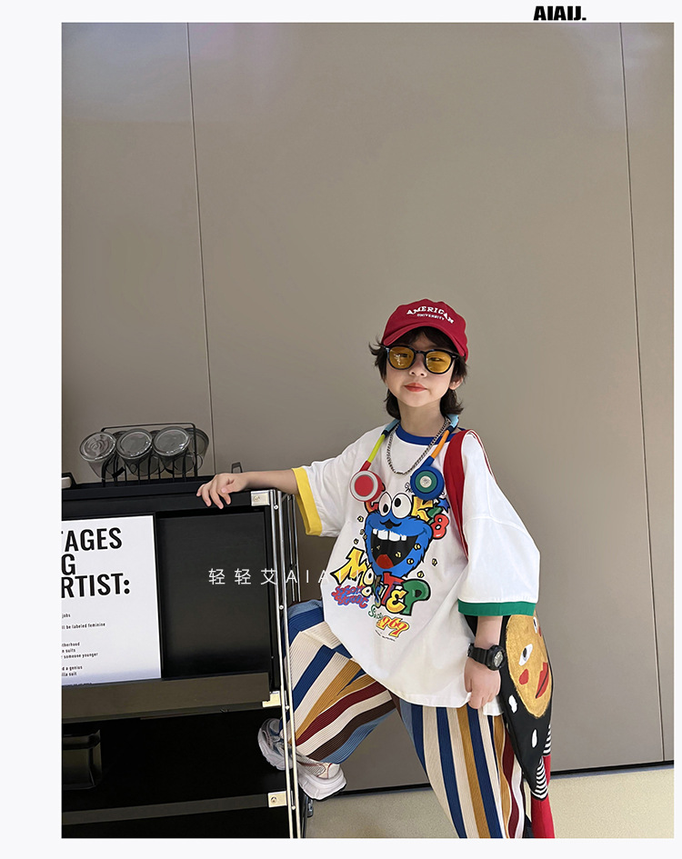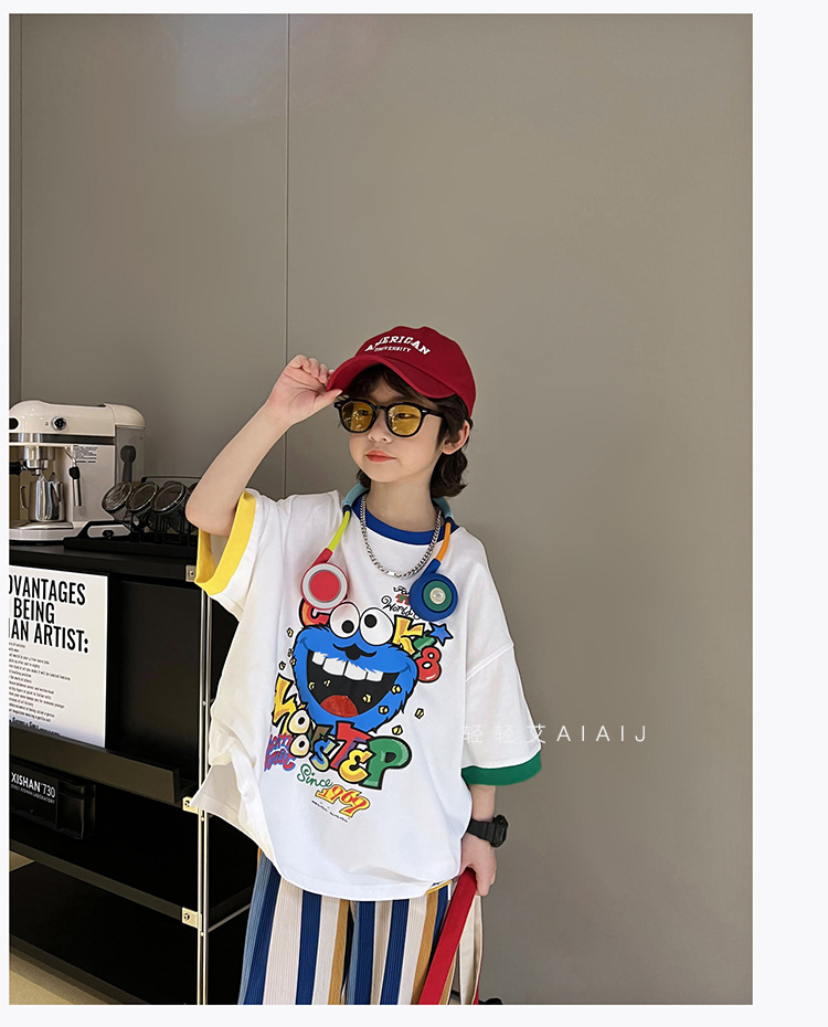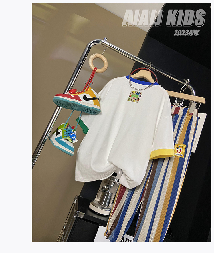 아동용 반팔 티셔츠 남아 여름 한국식 배색 반팔 루즈한 서양식 만능 남아 중대형 아동 탑 트렌디 티셔츠스토어 가기