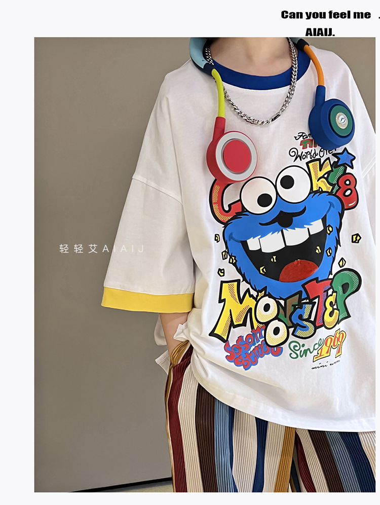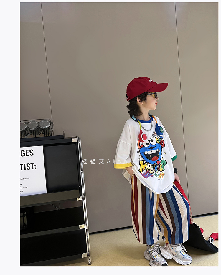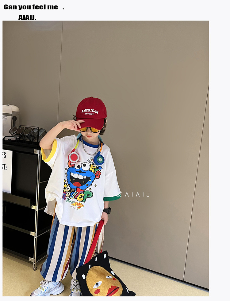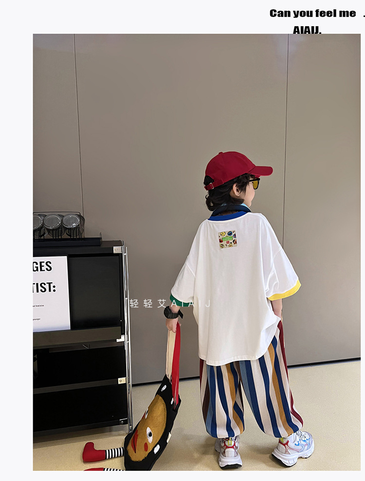 아동용 반팔 티셔츠 남아 여름 한국식 배색 반팔 루즈한 서양식 만능 남아 중대형 아동 탑 트렌디 티셔츠스토어 가기