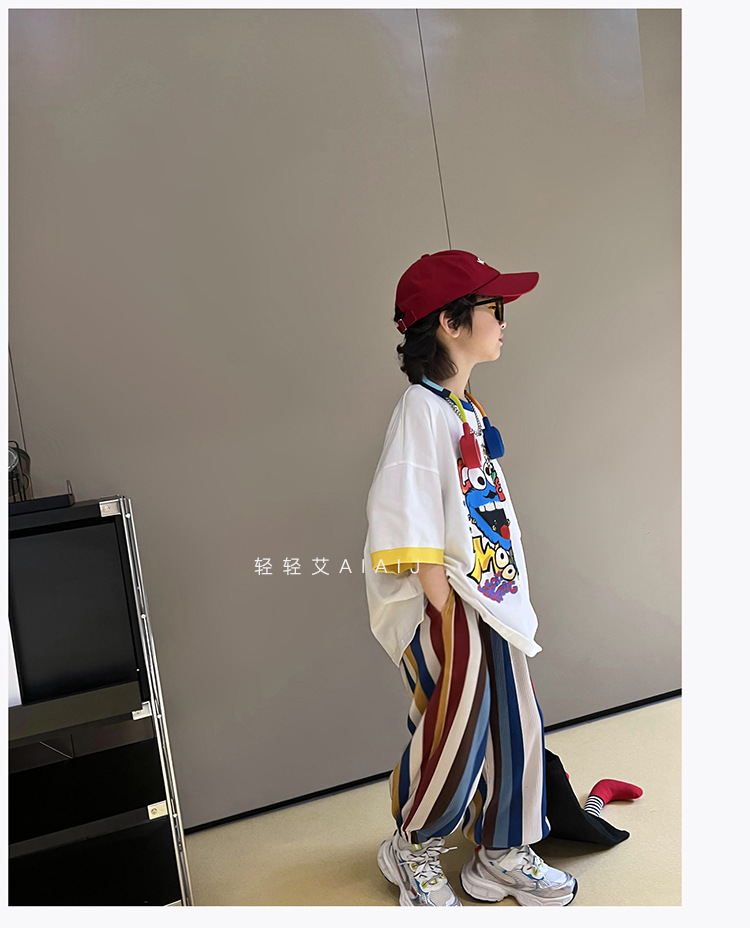 아동용 반팔 티셔츠 남아 여름 한국식 배색 반팔 루즈한 서양식 만능 남아 중대형 아동 탑 트렌디 티셔츠