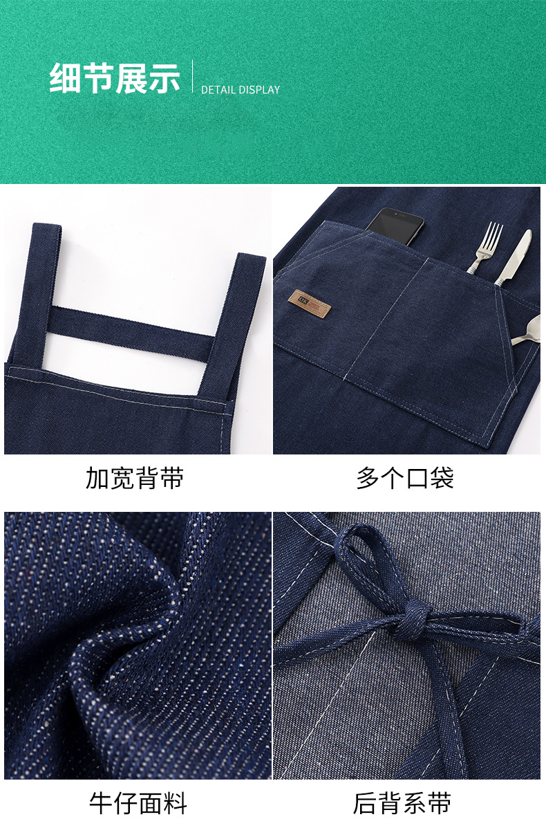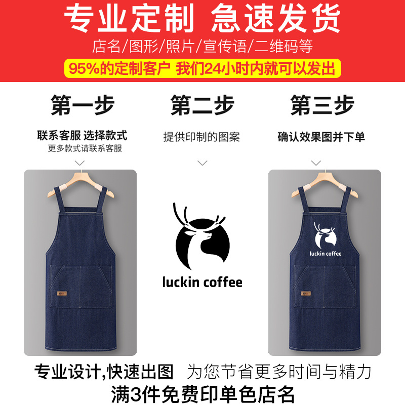 데님 앞치마 주방용 가정용 2025 신형 케이터링 전용 맞춤 로고 인쇄 커피숍 작업복스토어 가기