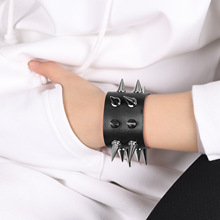 厂家直销欧美跨境朋克非主流合金铆钉尖钉双排手环 个性夸张首饰
