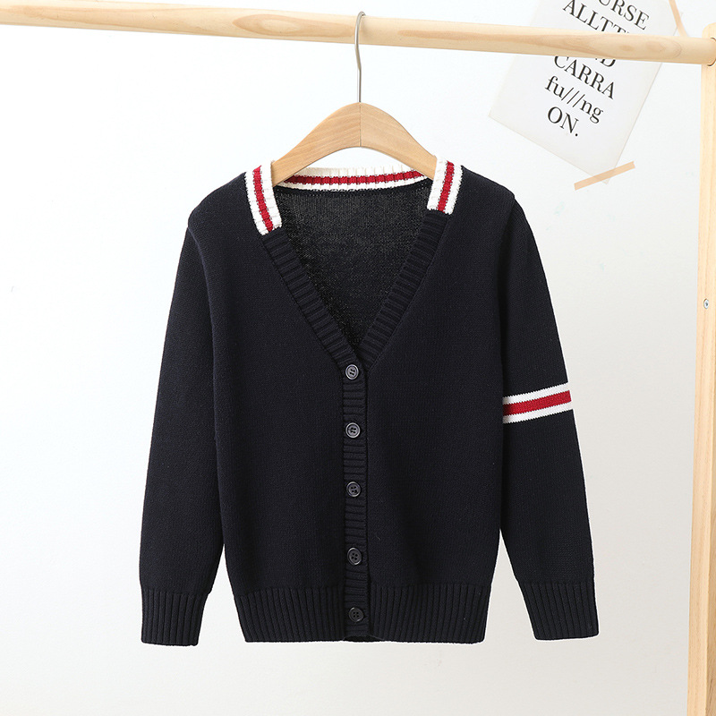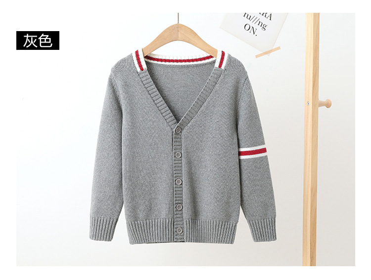 어린이 가디건 스웨터 초등학교 소년 유치원 니트 교복 회색 큰 어린이 소년 소녀 면 코트