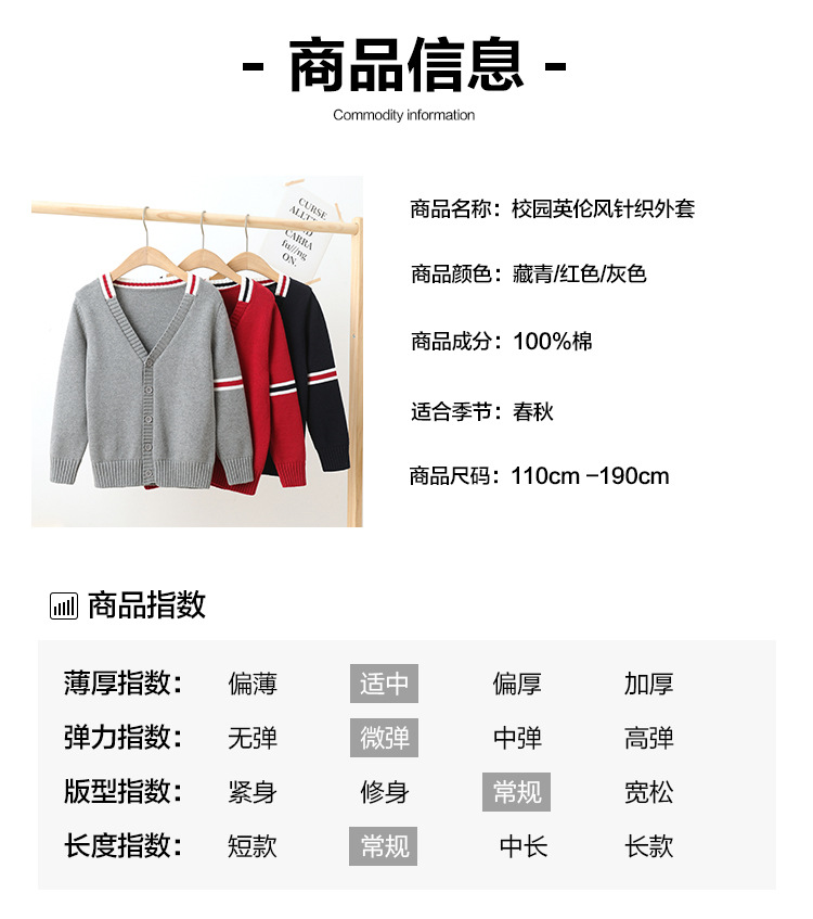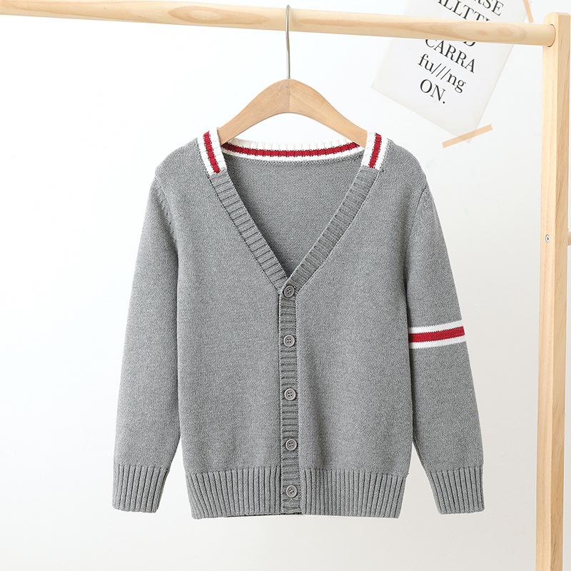 어린이 가디건 스웨터 초등학교 소년 유치원 니트 교복 회색 큰 어린이 소년 소녀 면 코트스토어 가기