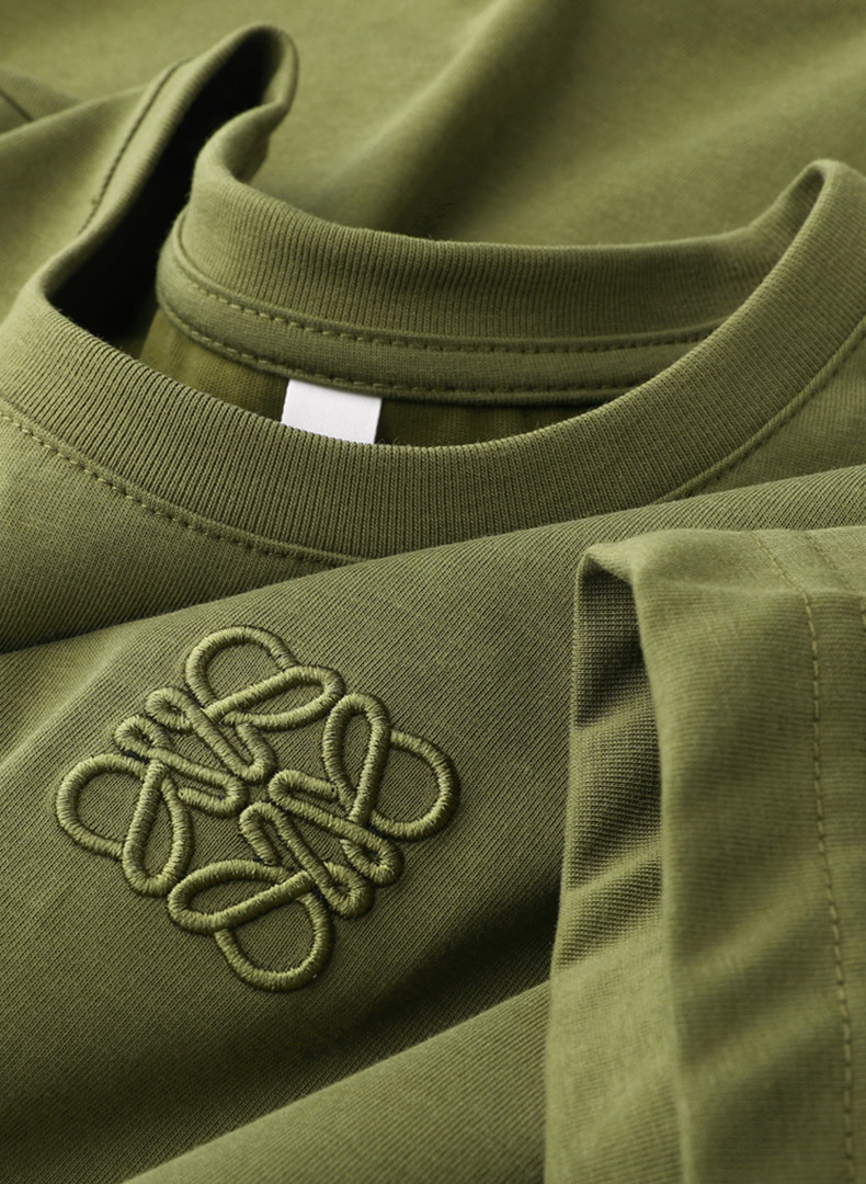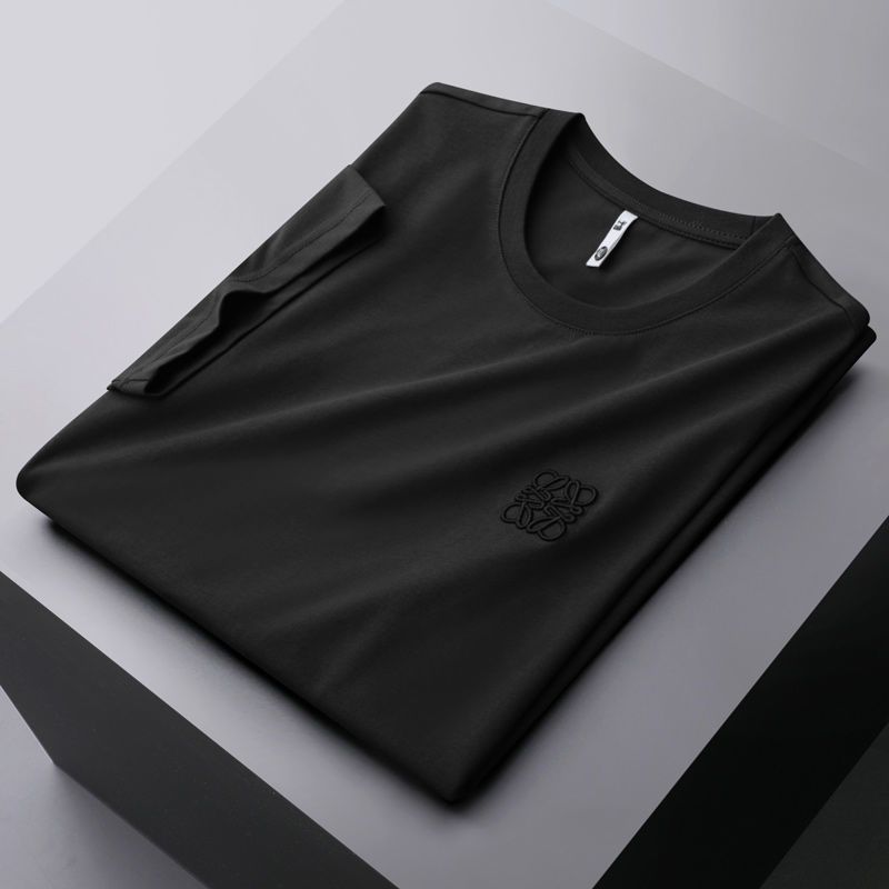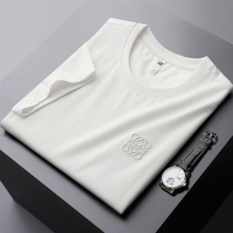 유럽 헤비 실크 면 반팔 티셔츠 남성용 슬림핏 패션 고급 자수 라운드 넥 반팔 남성베이스 셔츠 트렌디스토어 가기