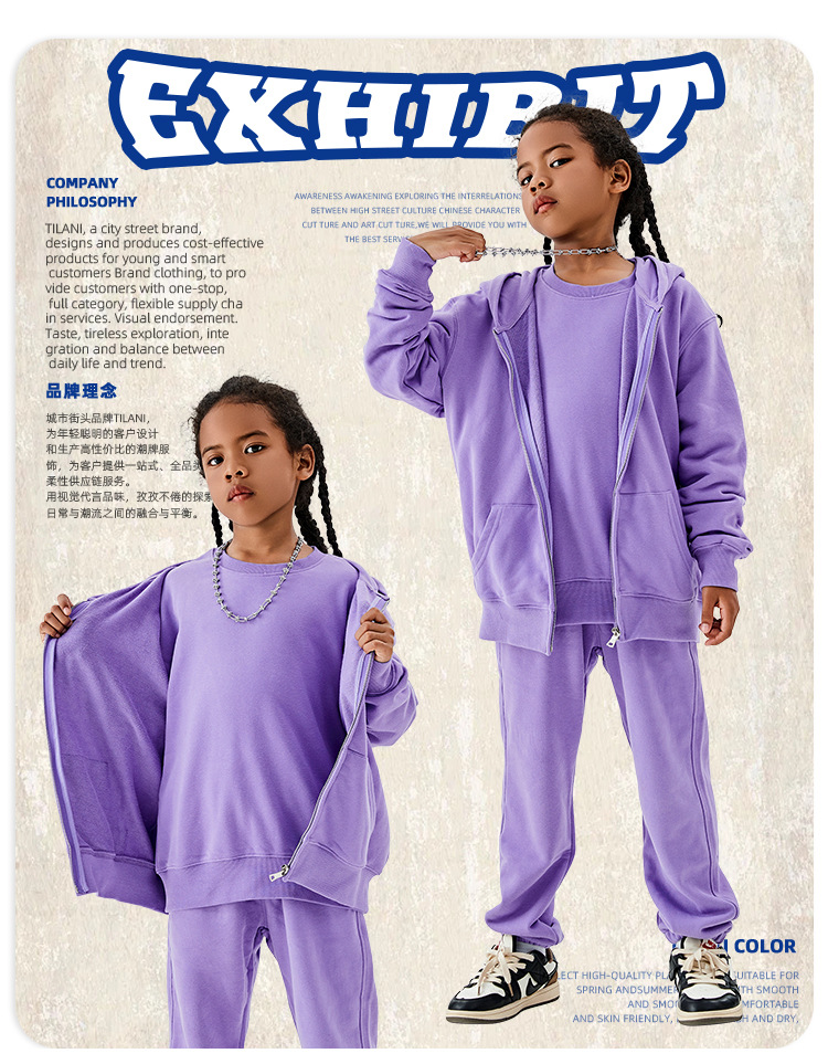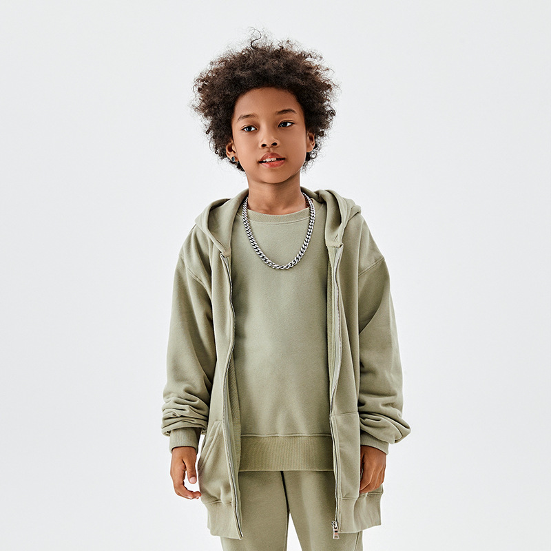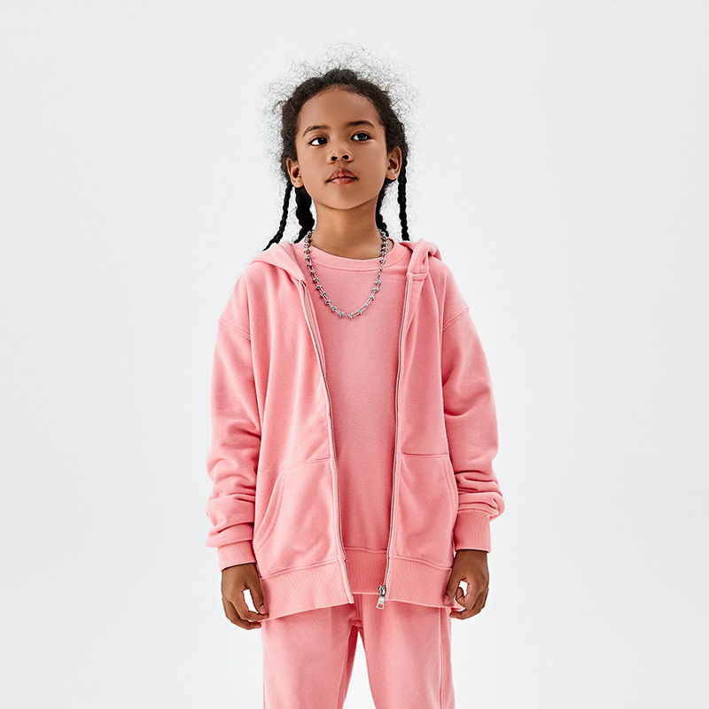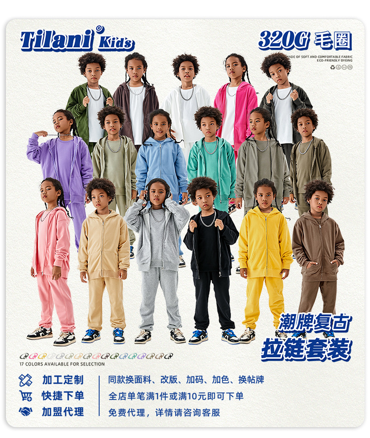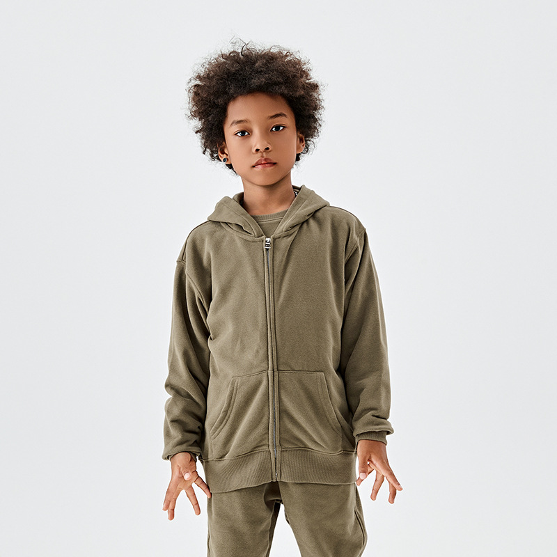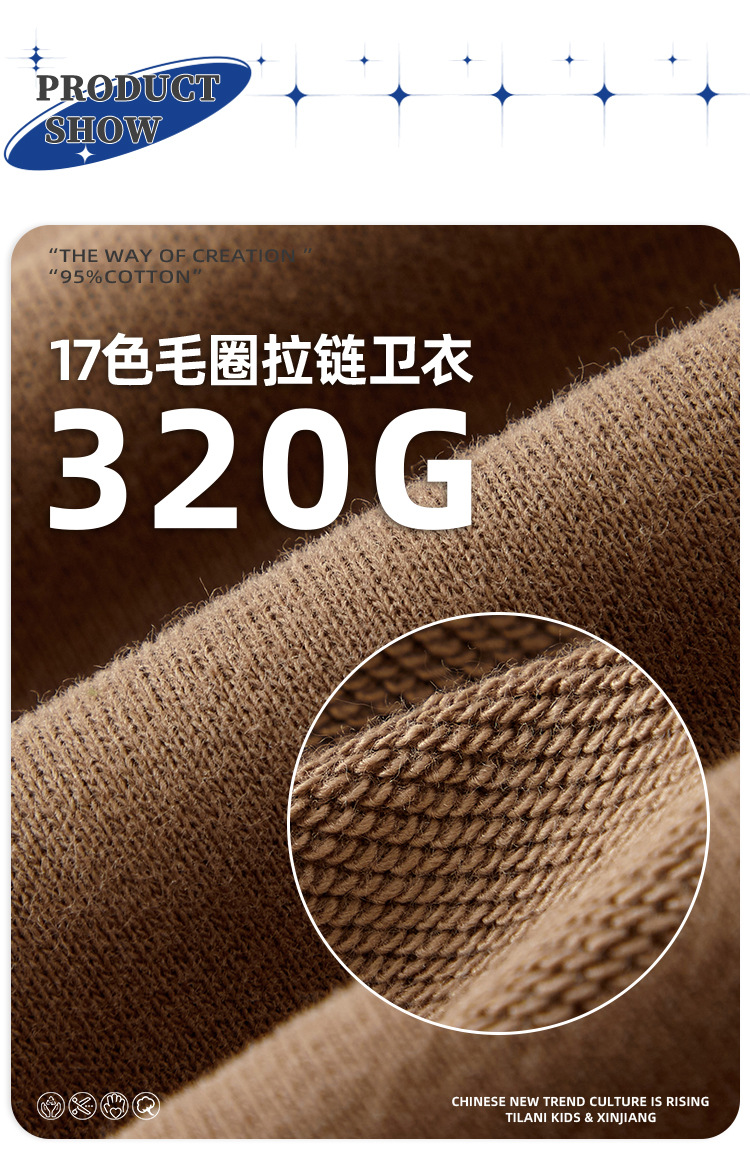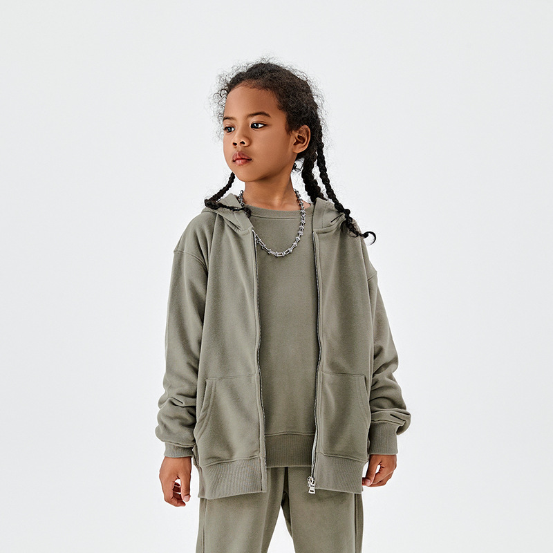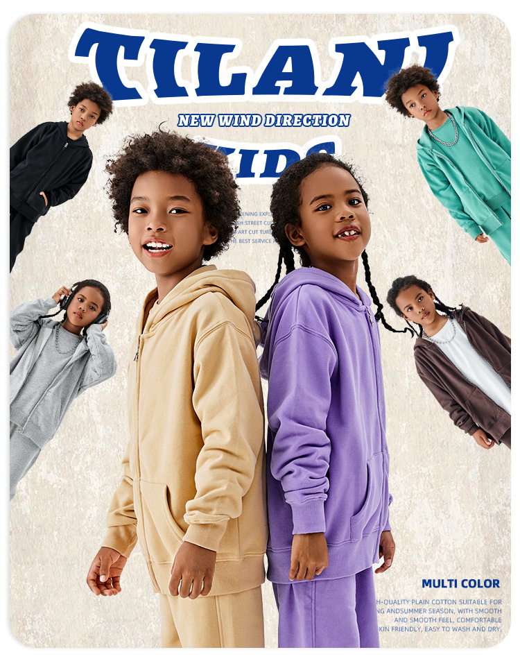 TILANI 아동복 유럽과 미국 도파민 320g 대형 테리 코튼 남성 및 여성용 아동용 후드 지퍼 스웨터 코트 생성 헤어
