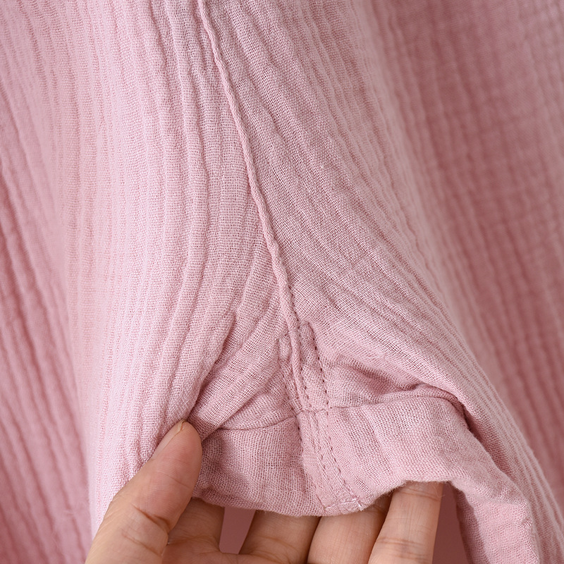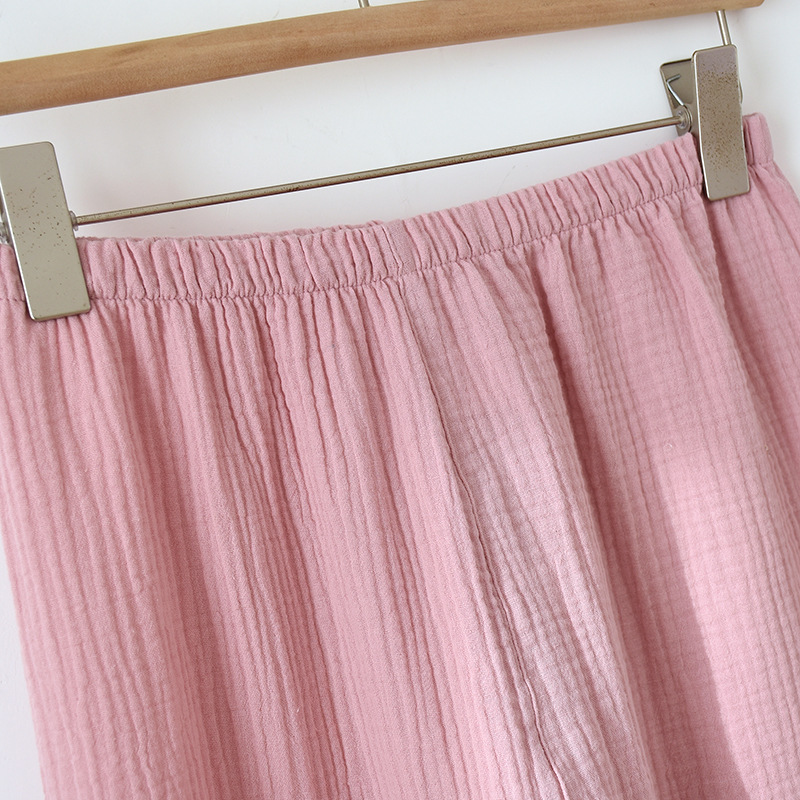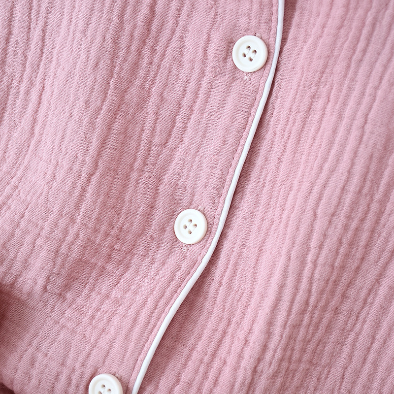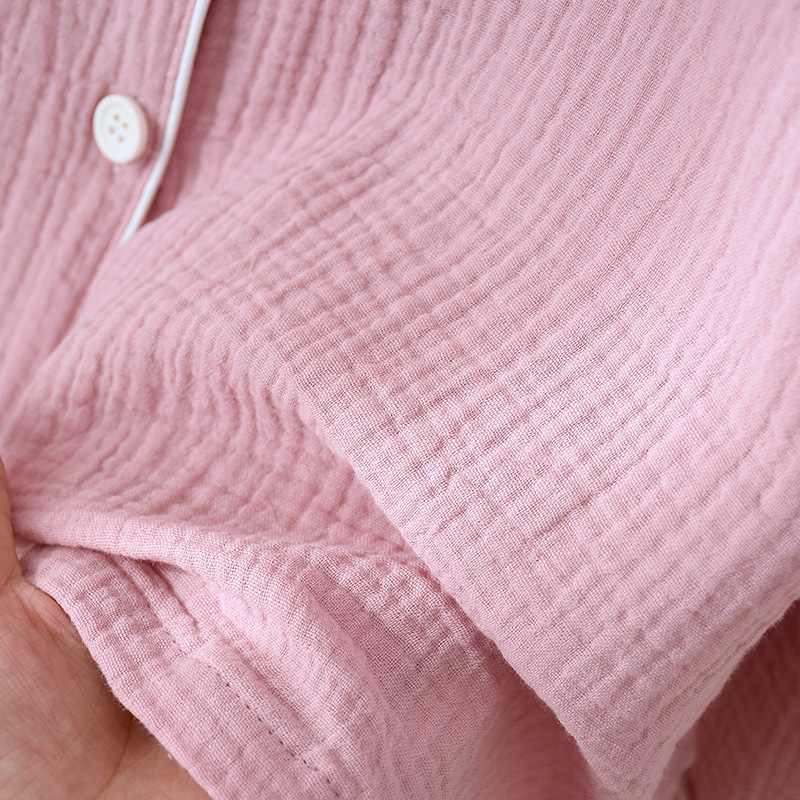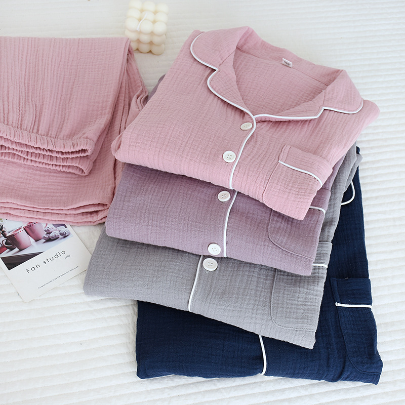 일본식 단색 남성과 여성의 잠옷 봄과 여름 순면 거즈 더블 레이어 크레이프 긴팔 플러스 사이즈 가디건 가정 의류 세트