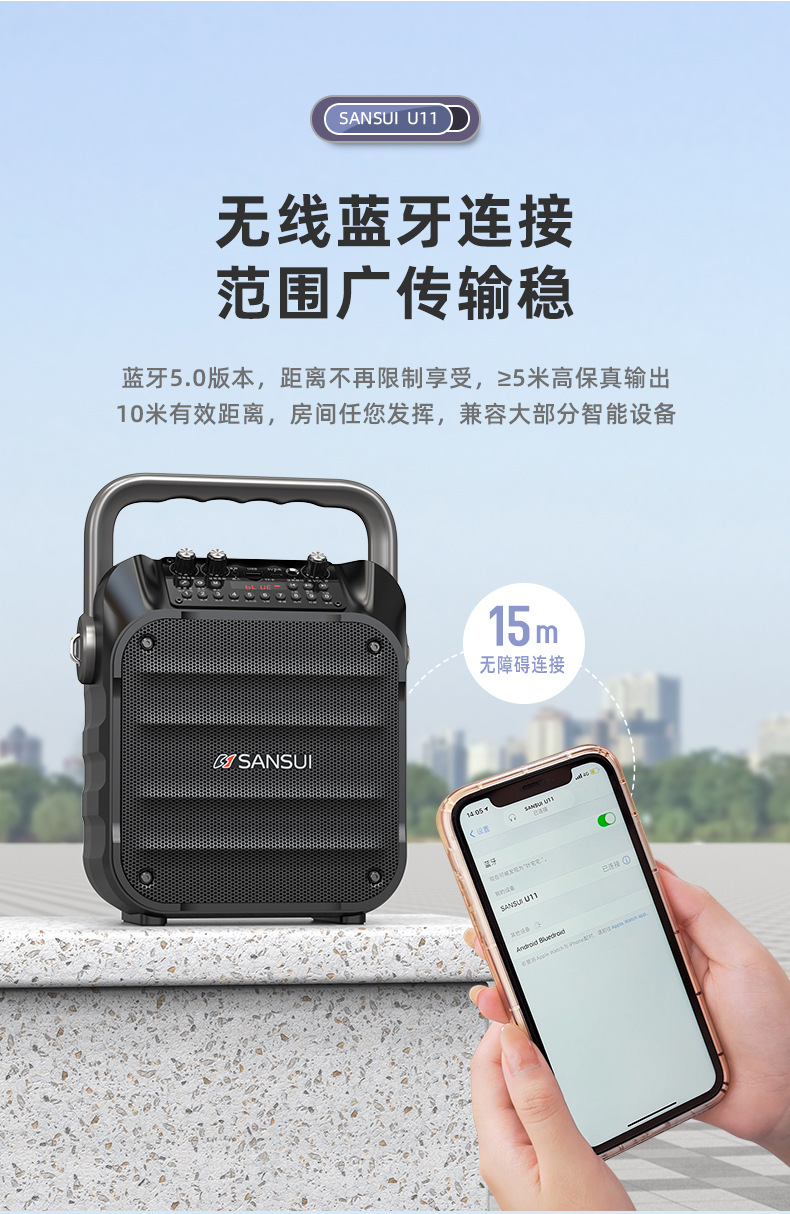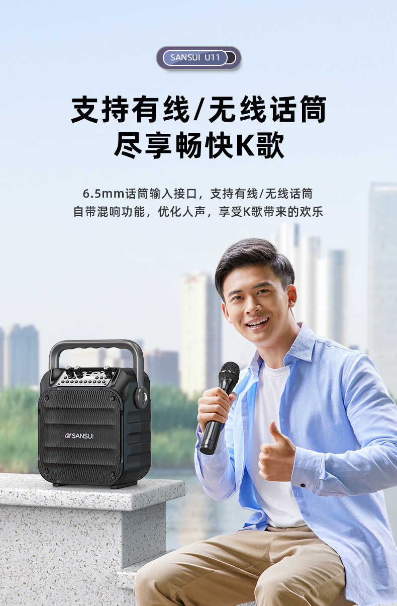 Shanshui u11 무선 블루투스 휴대용 스피커 스퀘어 댄스 야외 휴대용 가라오케 공연 미니 소형 스피커베이스