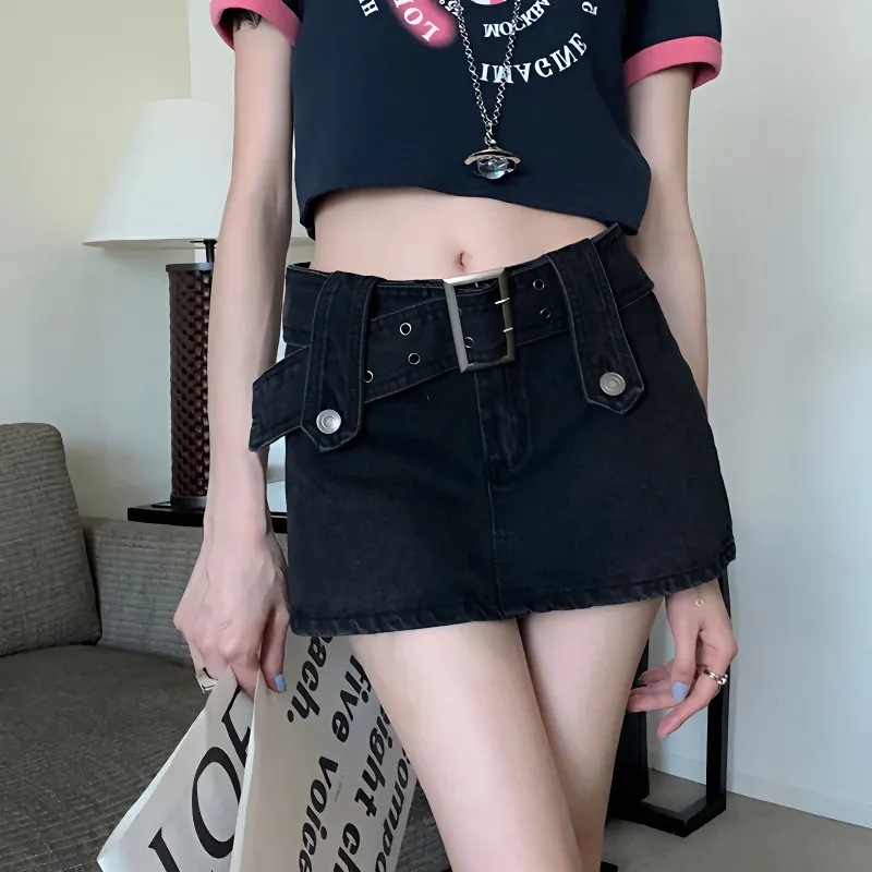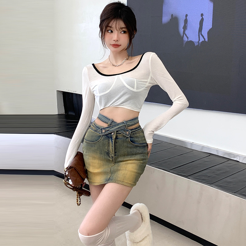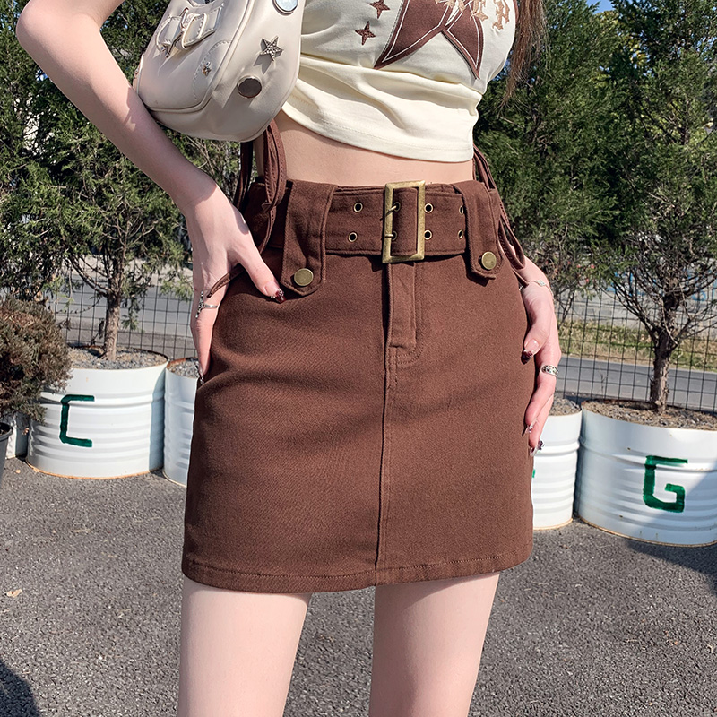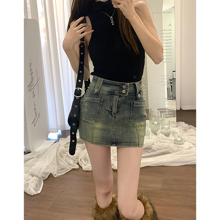 하이웨이스트 데님 스커트 여성용 봄철 노출방지 스커트팬츠 미니스커트 힙허깅 스커트 타이트 빈티지 스타일