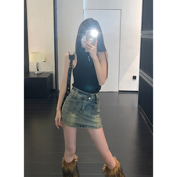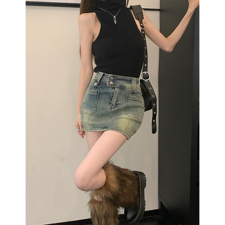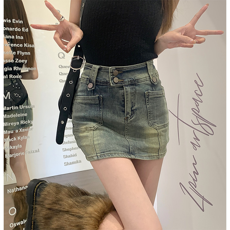 하이웨이스트 데님 스커트 여성용 봄철 노출방지 스커트팬츠 미니스커트 힙허깅 스커트 타이트 빈티지 스타일스토어 가기