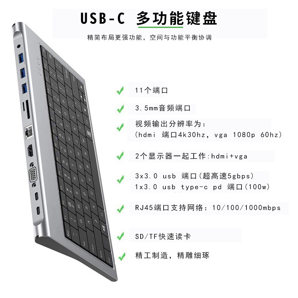 키보드 확장 도크 11 in 1typec 도킹 스테이션 다기능 허브 노트북 패블릿 외부