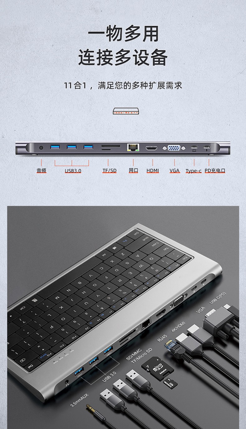 키보드 확장 도크 11 in 1typec 도킹 스테이션 다기능 허브 노트북 패블릿 외부스토어 가기