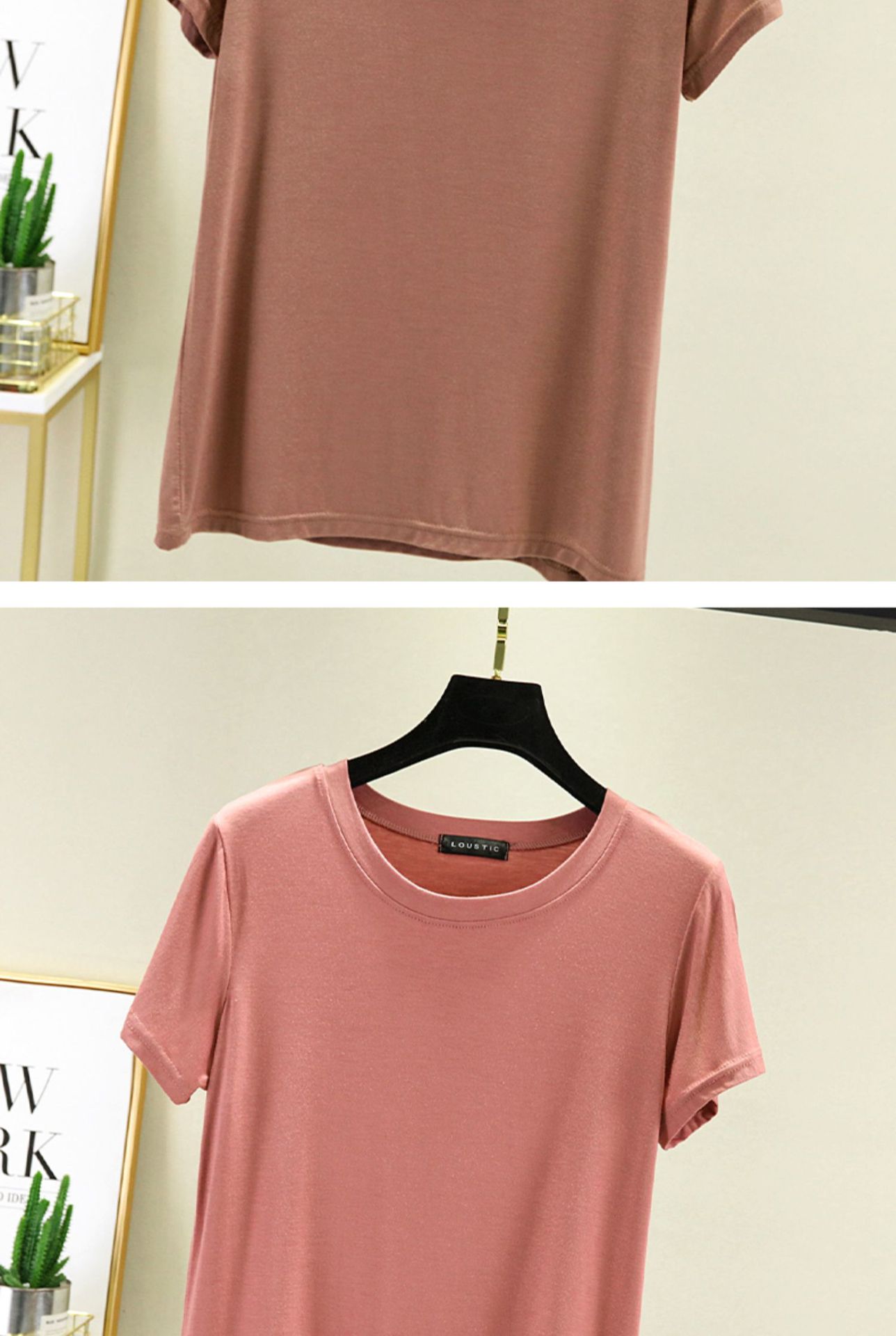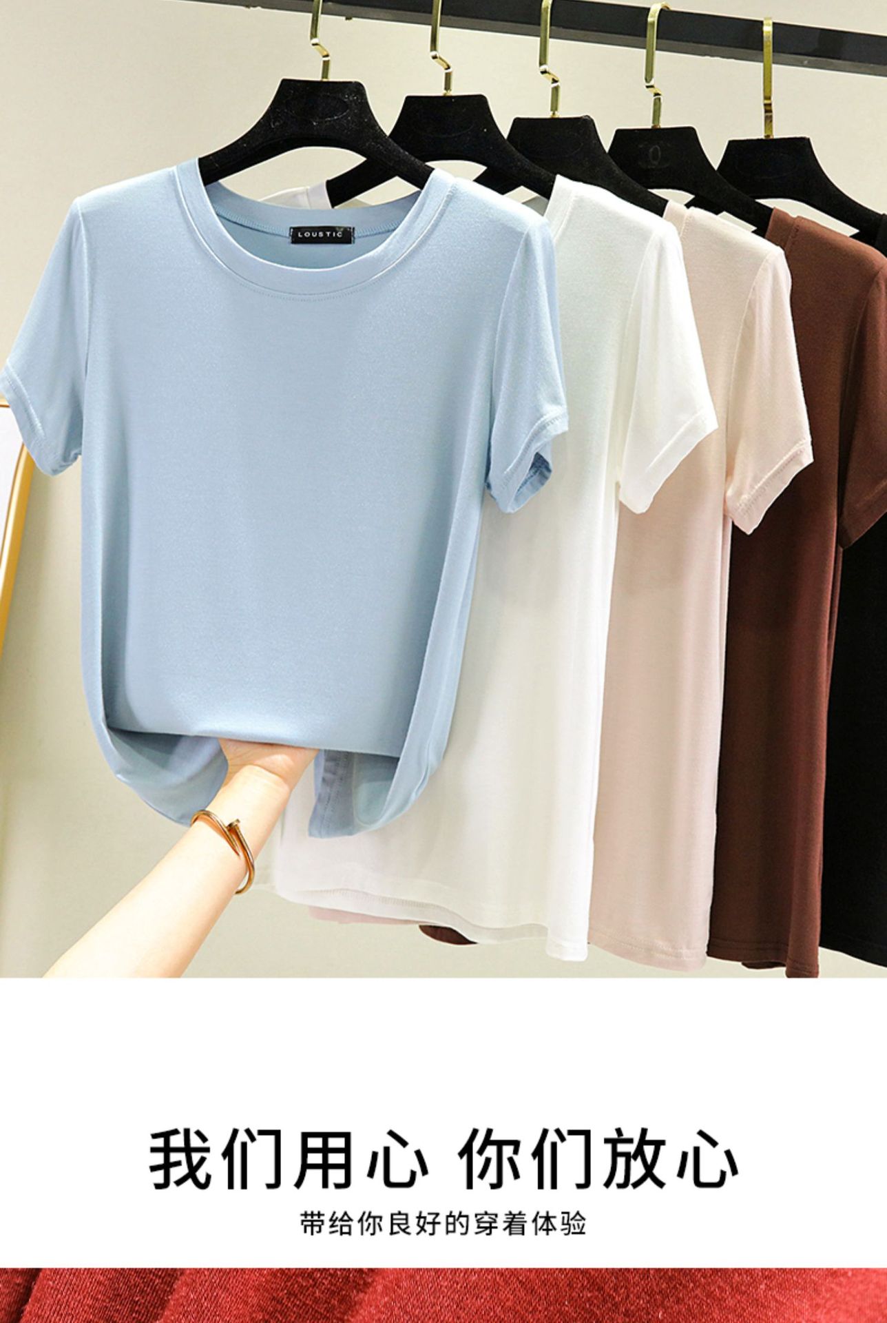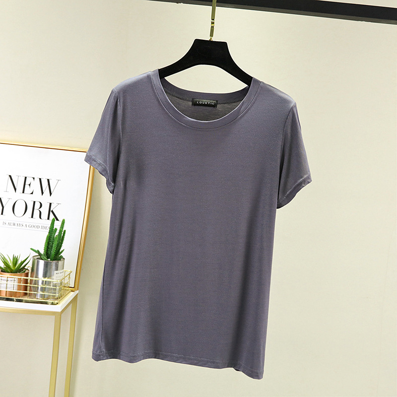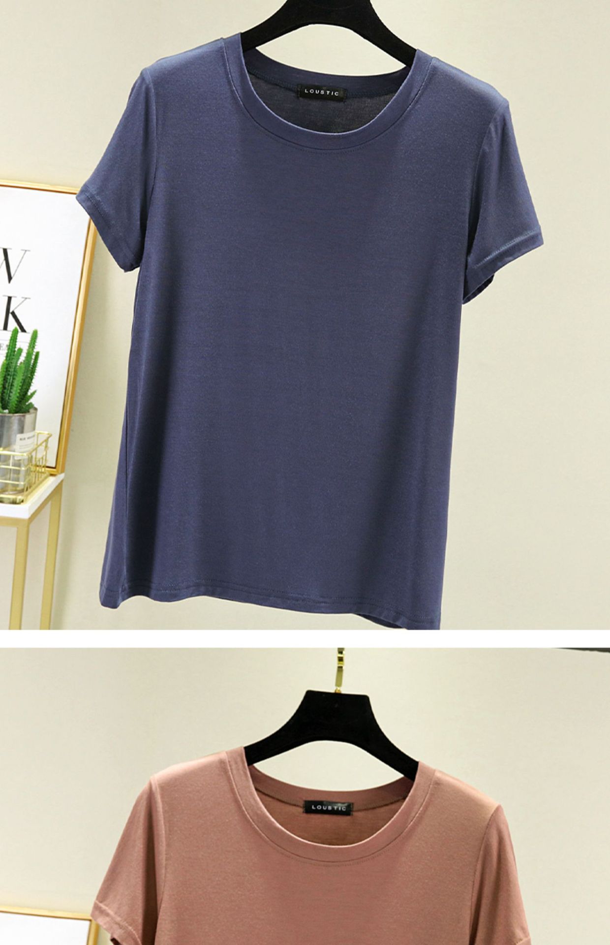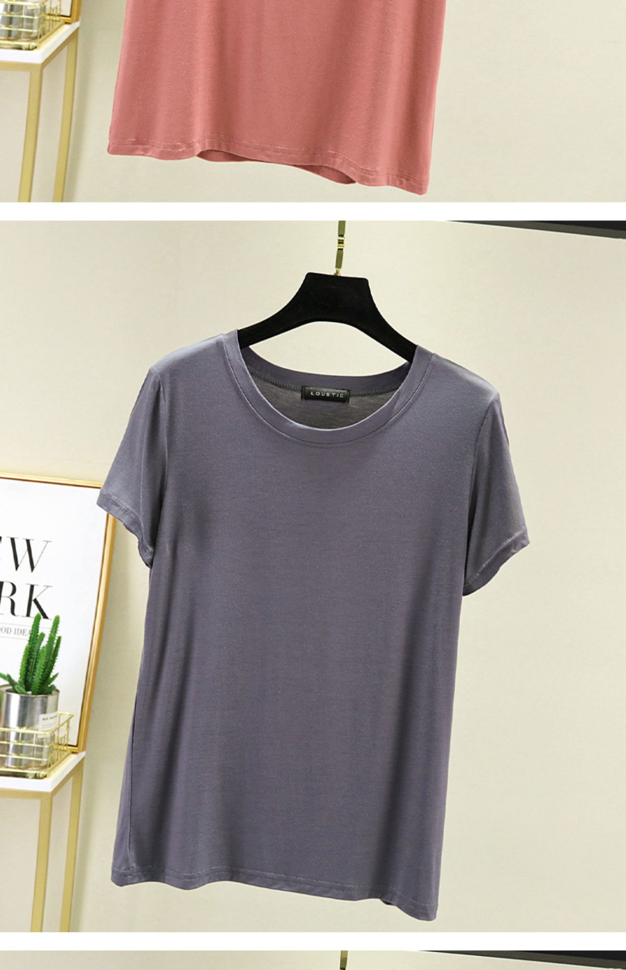 얇은 심플 모달 크루넥 반팔 티셔츠 여성용 여름 플러스 사이즈 이너베이스 셔츠 모든 매치 단색 겉옷 탑스토어 가기
