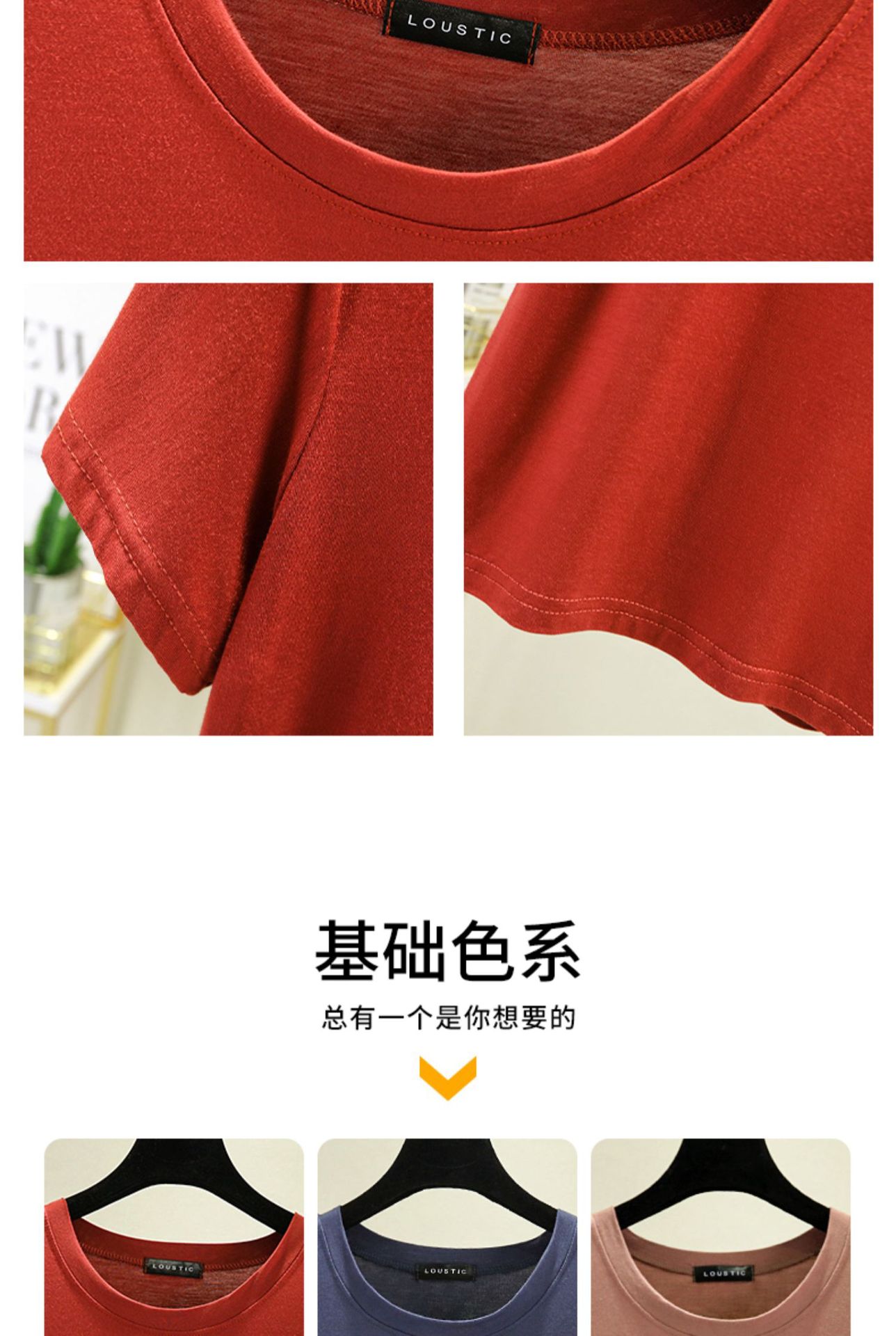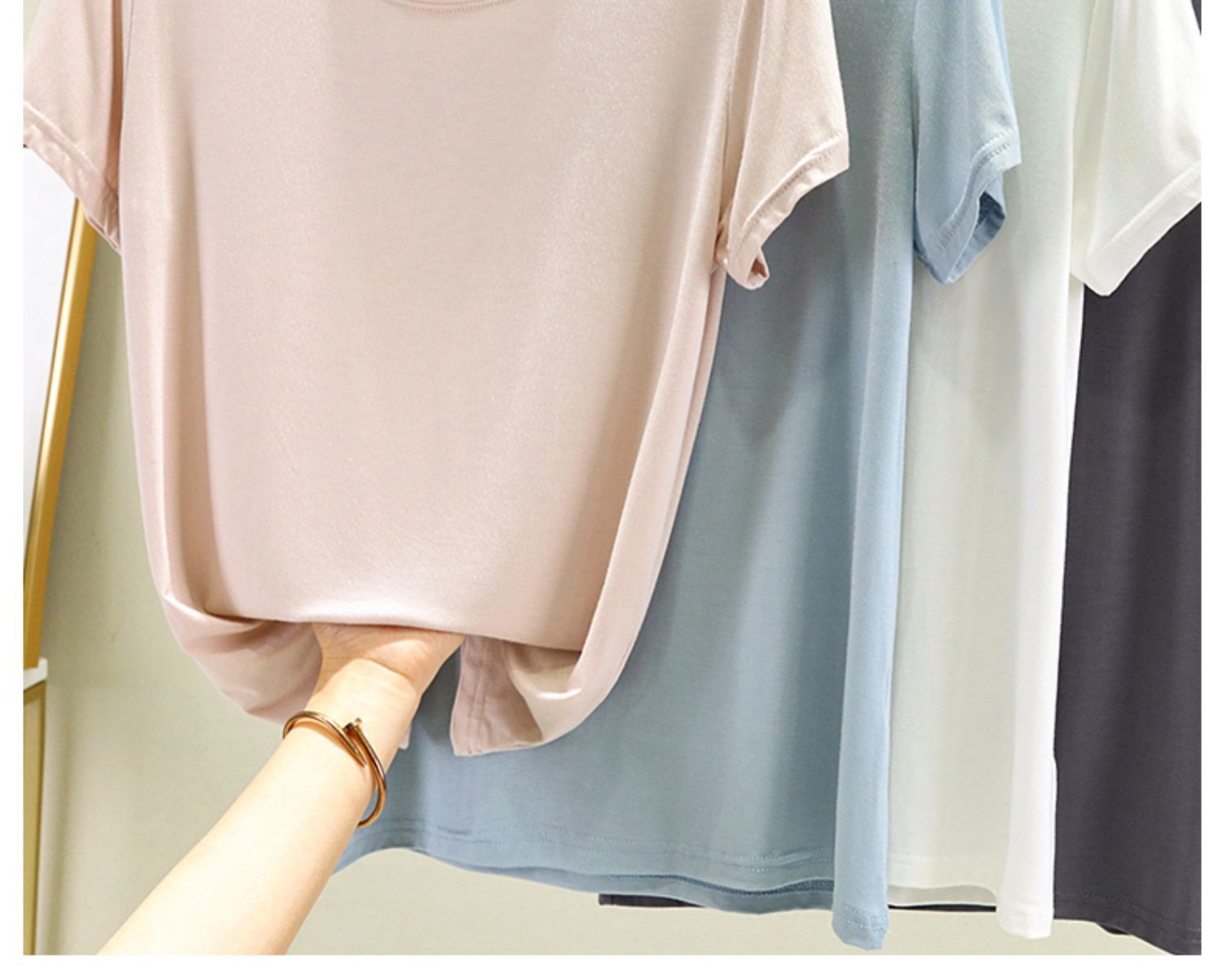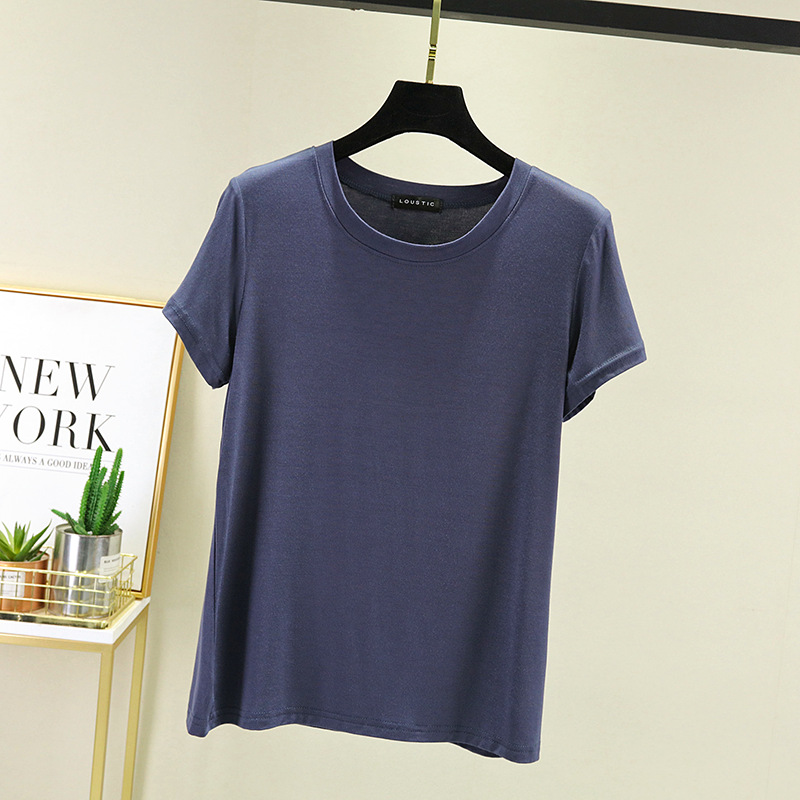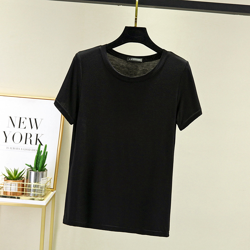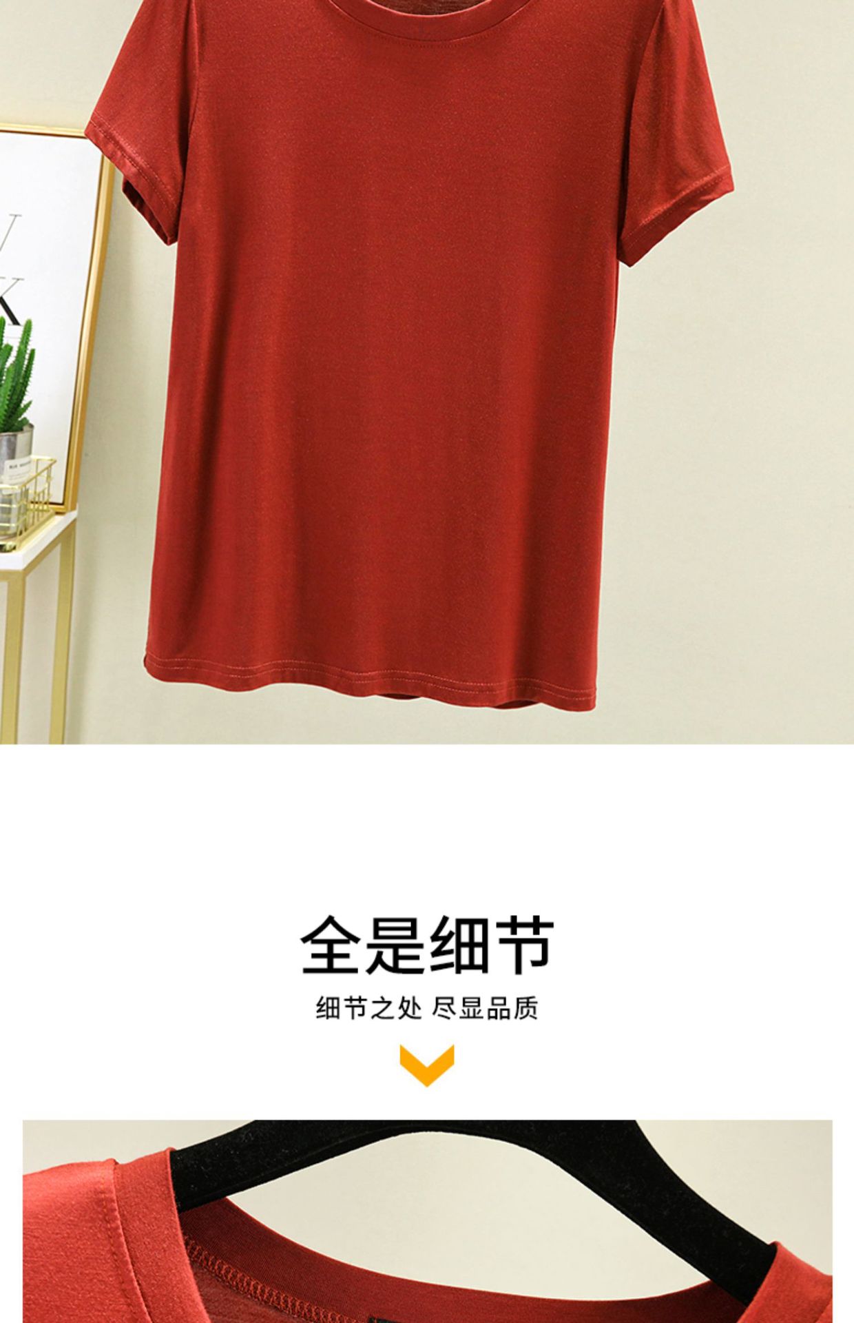 얇은 심플 모달 크루넥 반팔 티셔츠 여성용 여름 플러스 사이즈 이너베이스 셔츠 모든 매치 단색 겉옷 탑스토어 가기
