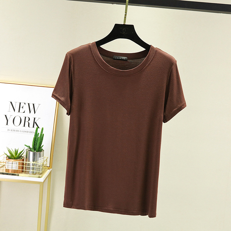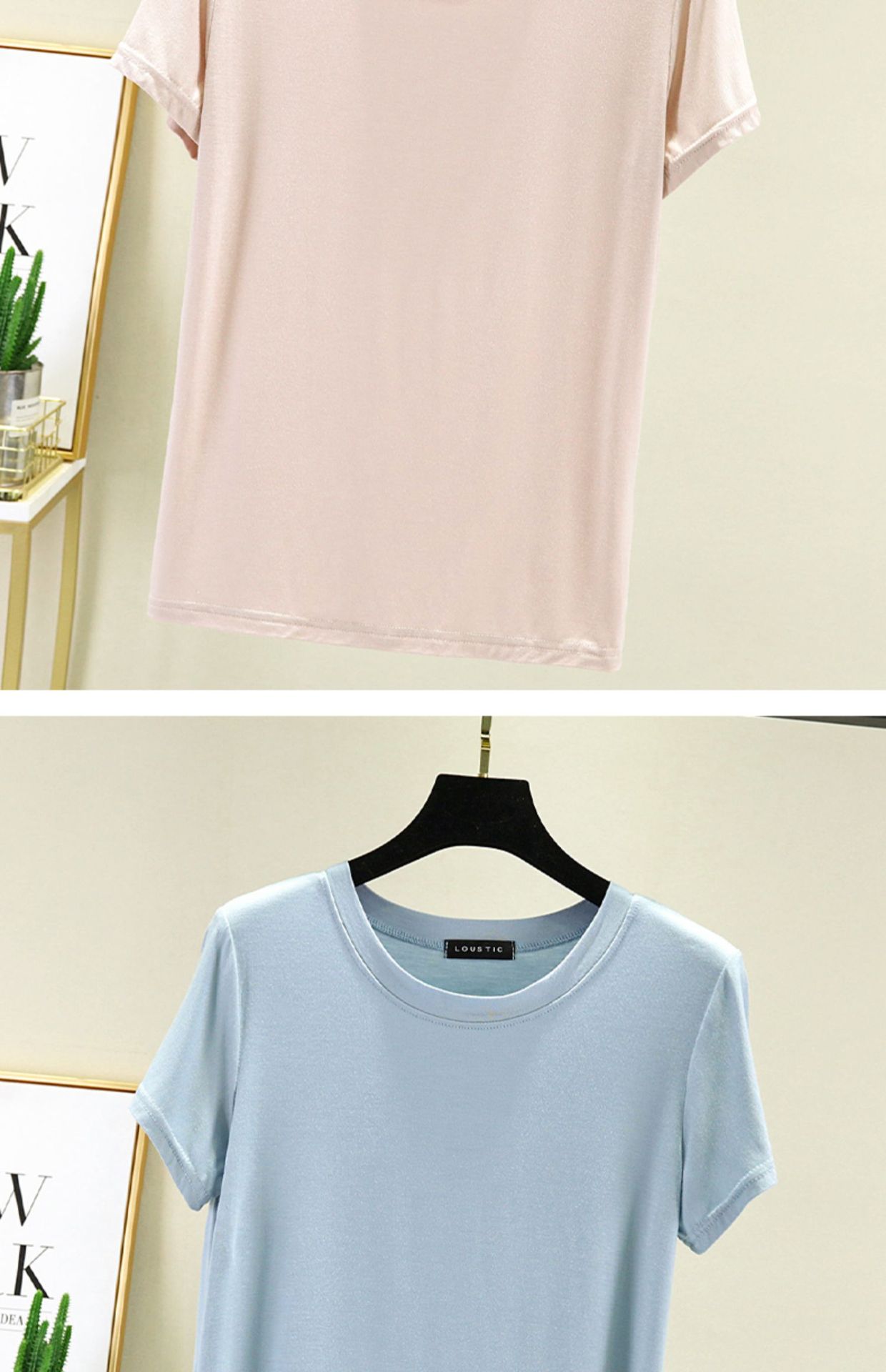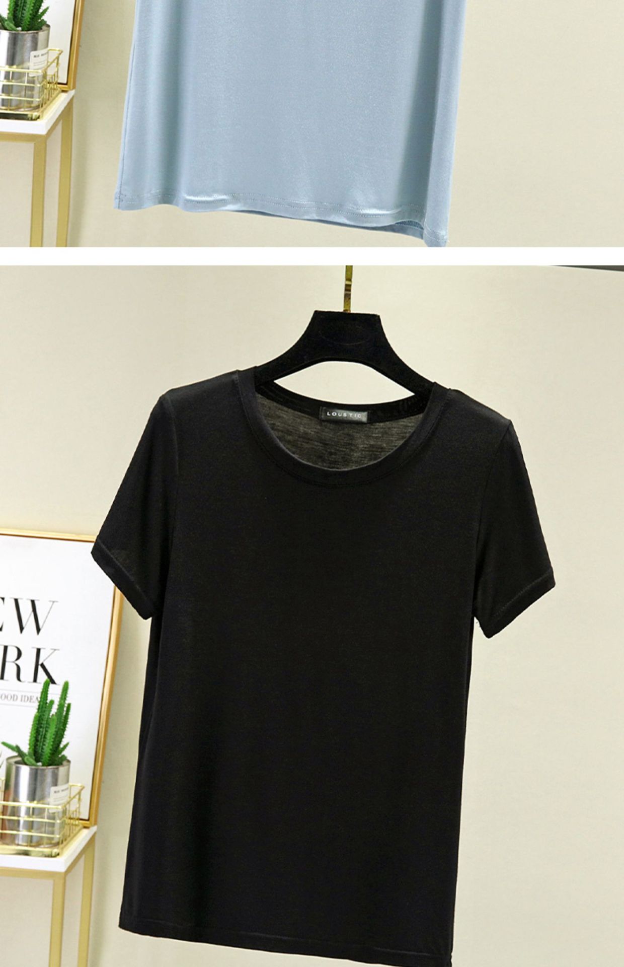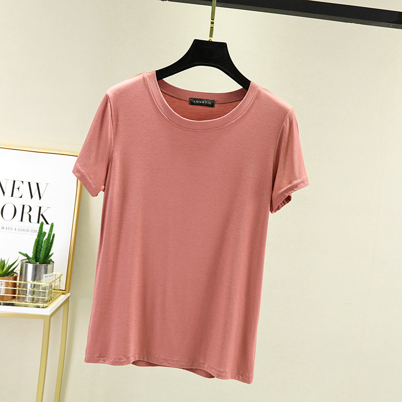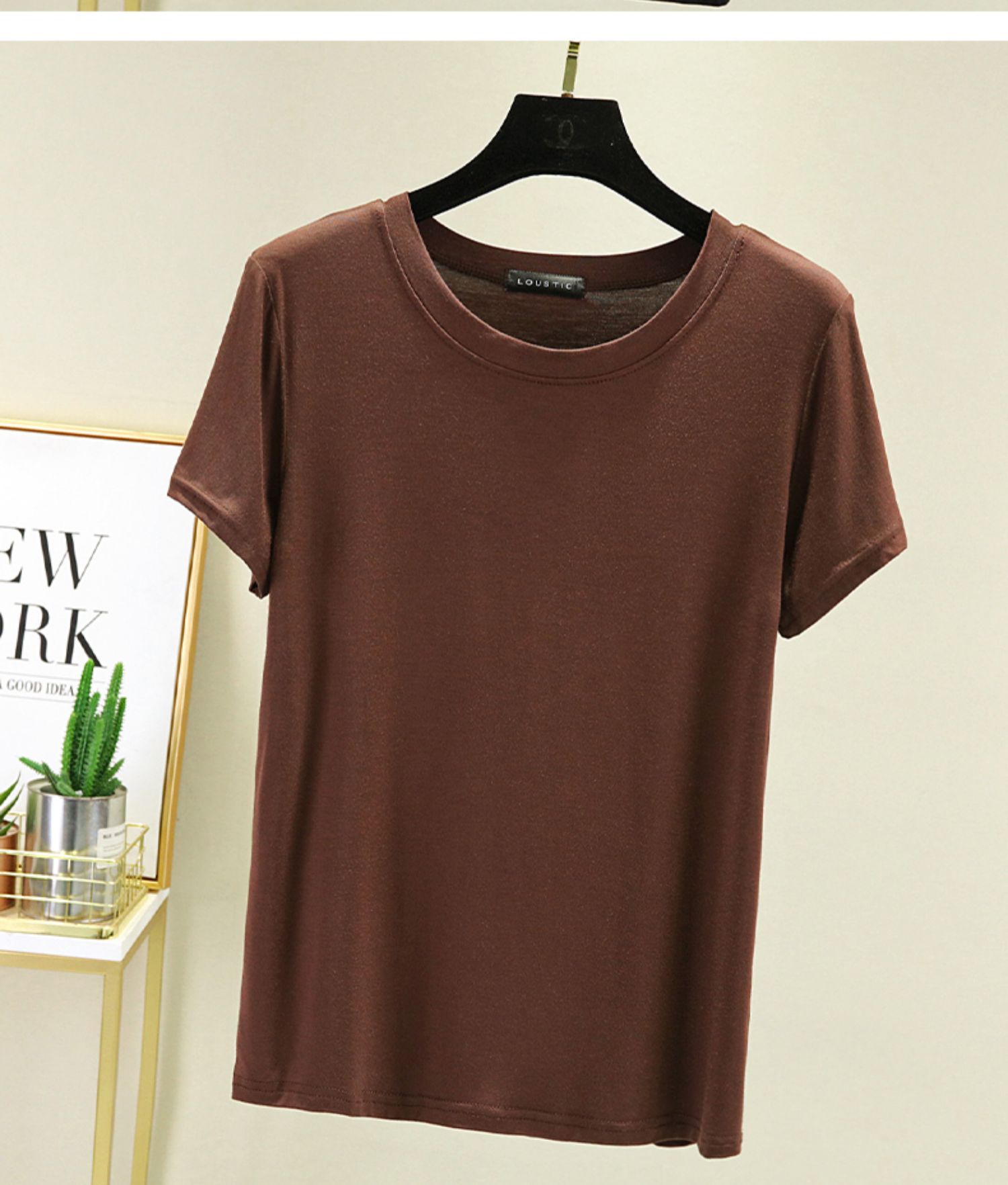 얇은 심플 모달 크루넥 반팔 티셔츠 여성용 여름 플러스 사이즈 이너베이스 셔츠 모든 매치 단색 겉옷 탑스토어 가기