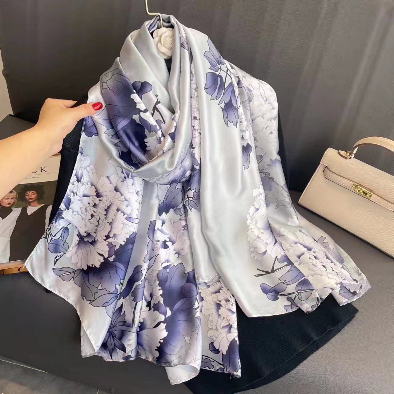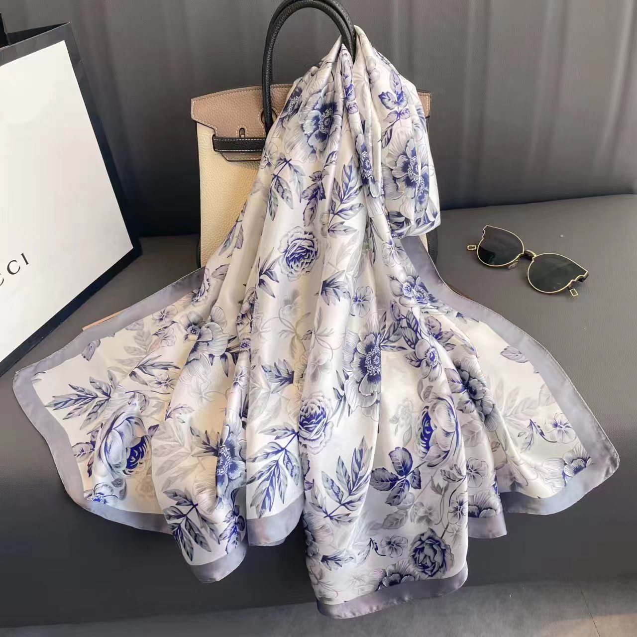 패션 새로운 여름 자외선 차단제 비치 스카프 여성의 실크 스카프 특대 휴일 2023 한국 스타일 새로운 스카프 숄 세련된스토어 가기