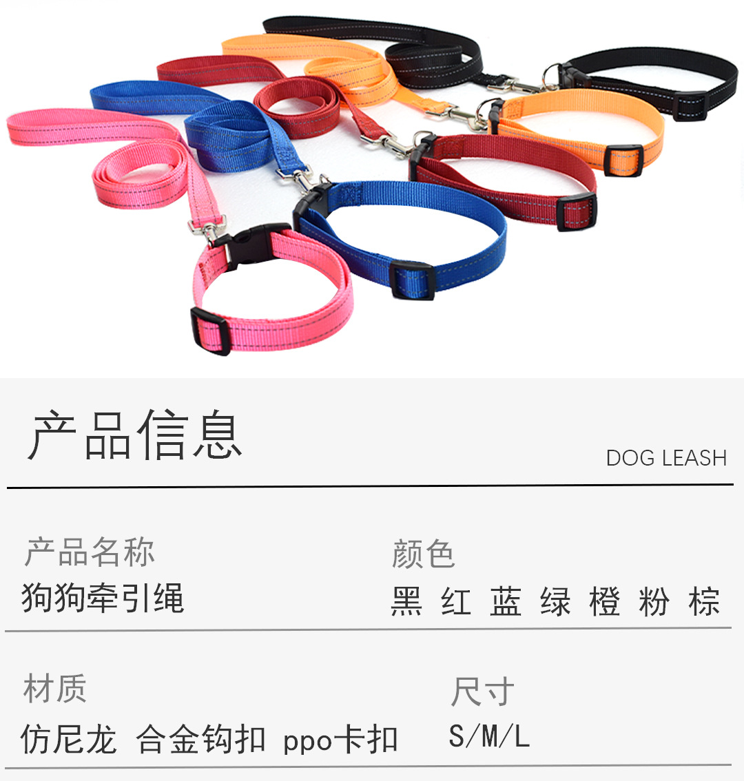 재고 도매 개 세트 목 조절 견인 로프 칼라 소형 중형 및 대형 개 체인 로프 야간 반사 로프 넥 링